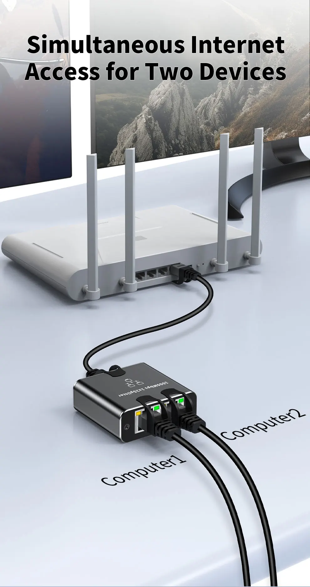 Solo 1 divisor Rj45 para lograr 1 puerto de red que extienda 2 puertos de red.