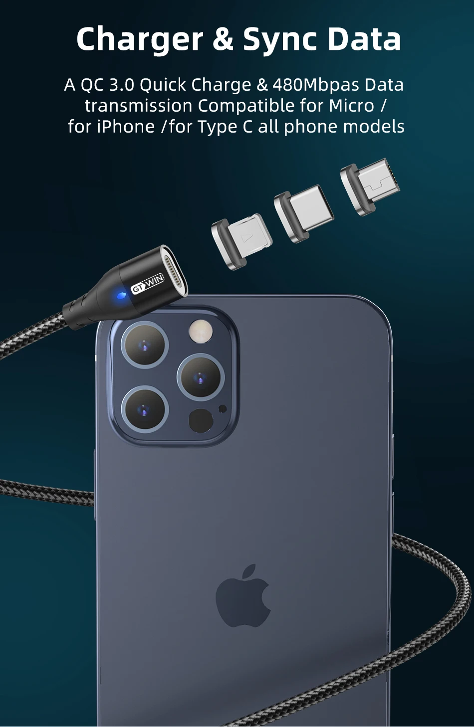 Comprar GTWIN-Cable magnético Micro tipo C, cargador magnético USB, carga rápida para iPhone, Samsung, Huawei, Xiaomi