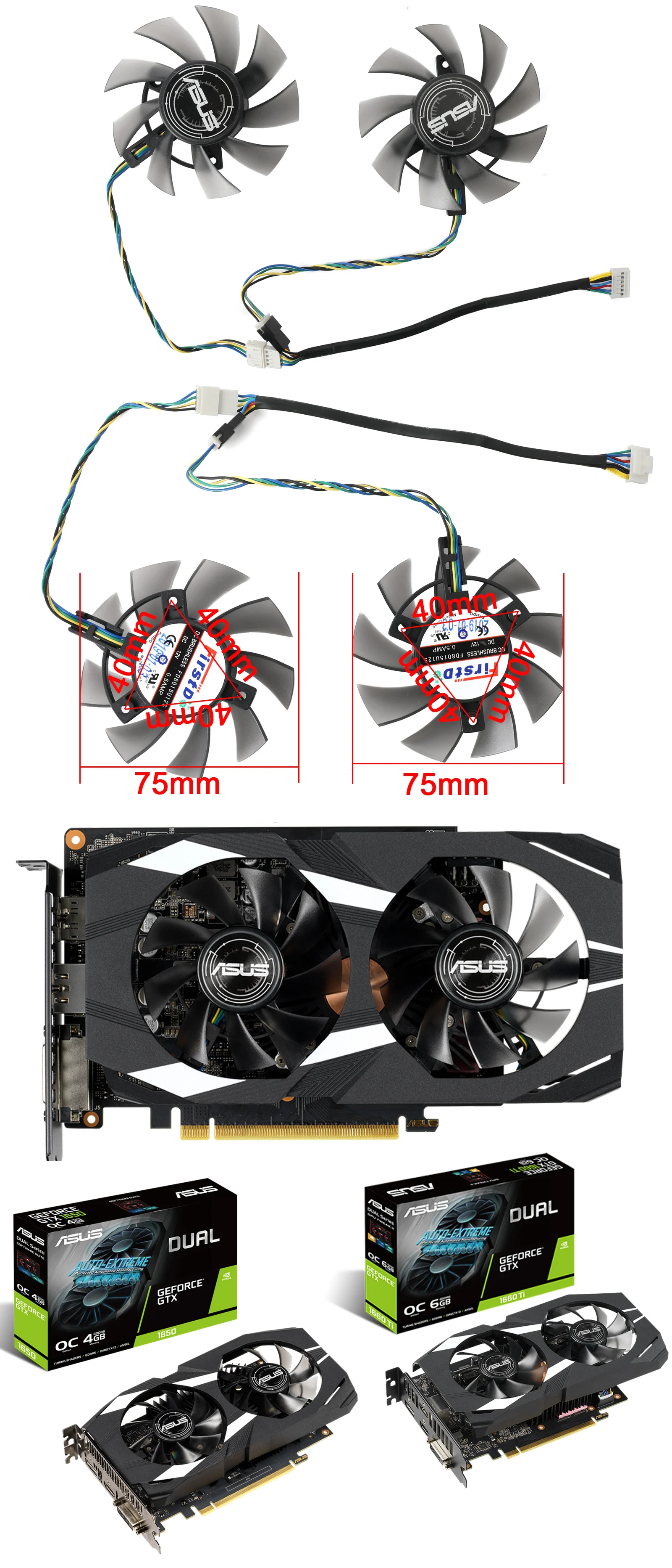 Comprar GTX1650 GTX1660 Ti ventilador de refrigeración GPU para ASUS Dual GTX 1650 1660Ti ventilador para tarjeta gráfica con estuche 75mm FD8015U12S