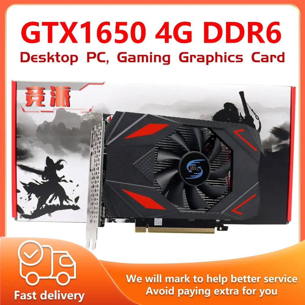 Comprar GTX1650-tarjeta gráfica de escritorio para GAMING, 4GB, 128 bits, GDDR6, chip para ordenador portátil, PCI Express 3,0, tarjetas de vídeo para PC, DVI, DP