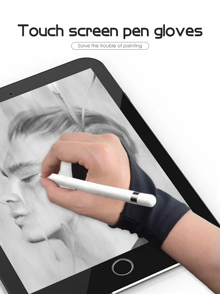 Comprar Guante antitáctil de artista de dos dedos para tableta de dibujo, guante de mano derecha izquierda, antiincrustante para tablero de pantalla de IPad, funda para el dedo