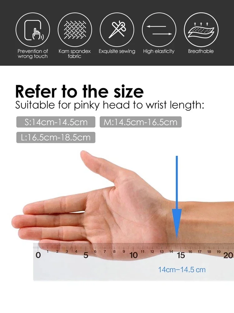 ¿Aún te preocupa que el tamaño del guante sea demasiado pequeño o demasiado grande?Hemos preparado cuidadosamente tres tamaños diferentes para usted, ¡puedes comprarlos en el tamaño correcto!S: 14CM-14.5CM M: 14,5CM-16,5CM L: 16,5CM-18,5CM El rango de medición es adecuado para la longitud de la cabeza y la muñeca.