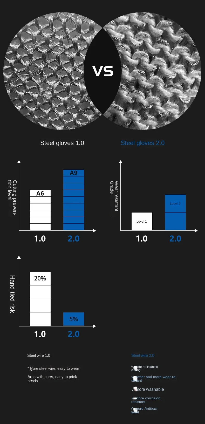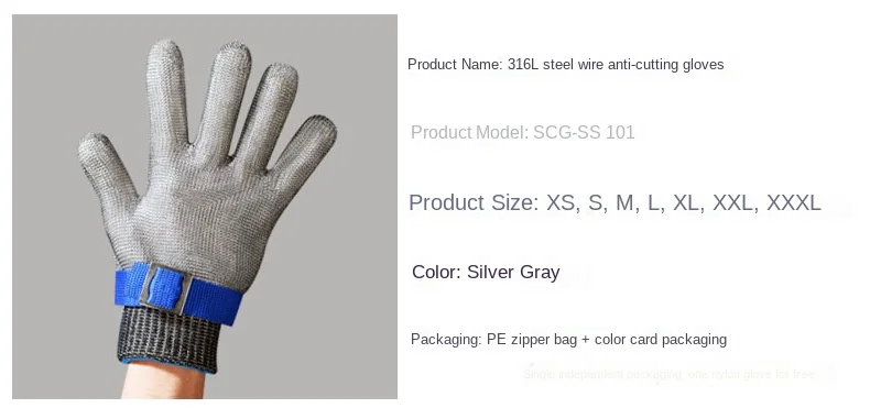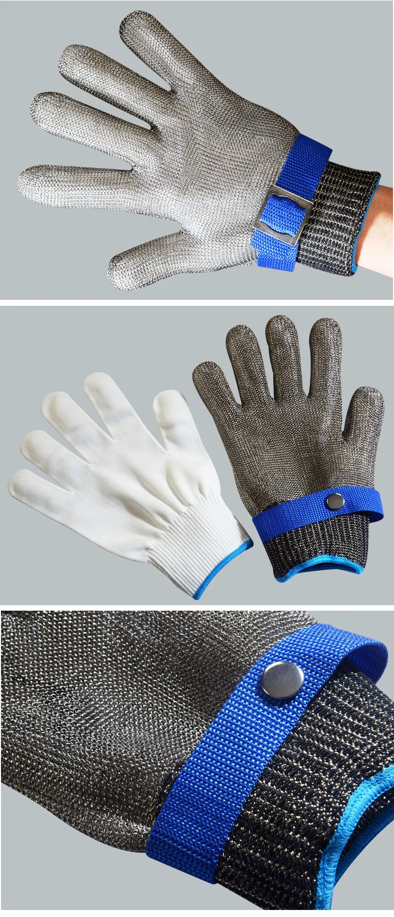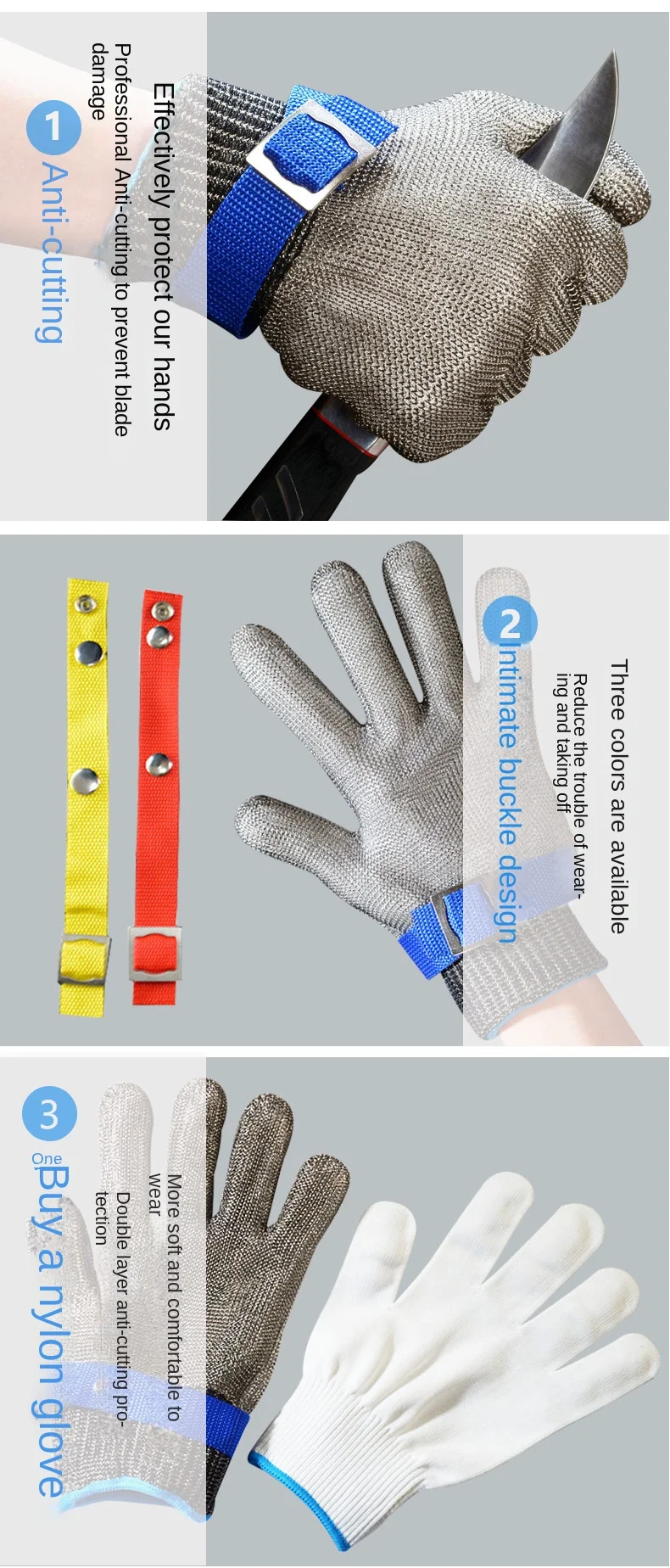 Comprar Guantes de acero inoxidable resistentes a cortes, guantes de seguridad laboral 316, malla metálica anticorte para trabajo de carnicero, 1 Uds.