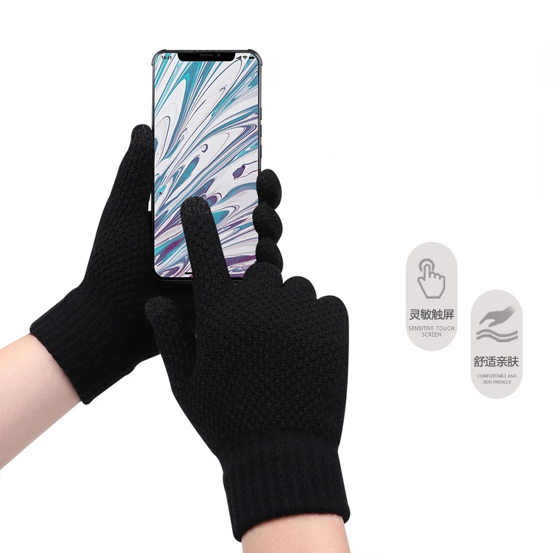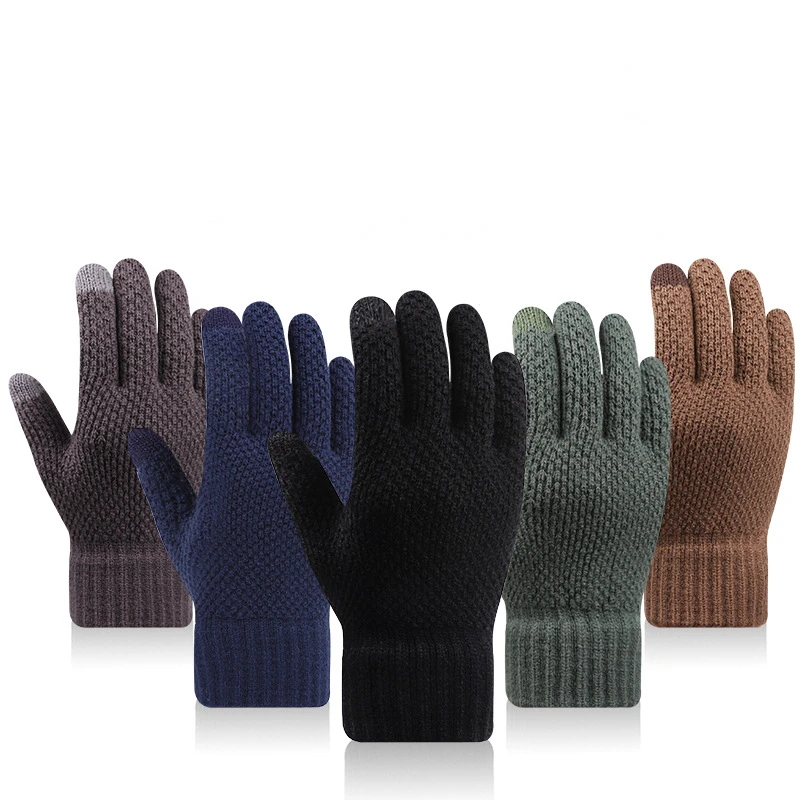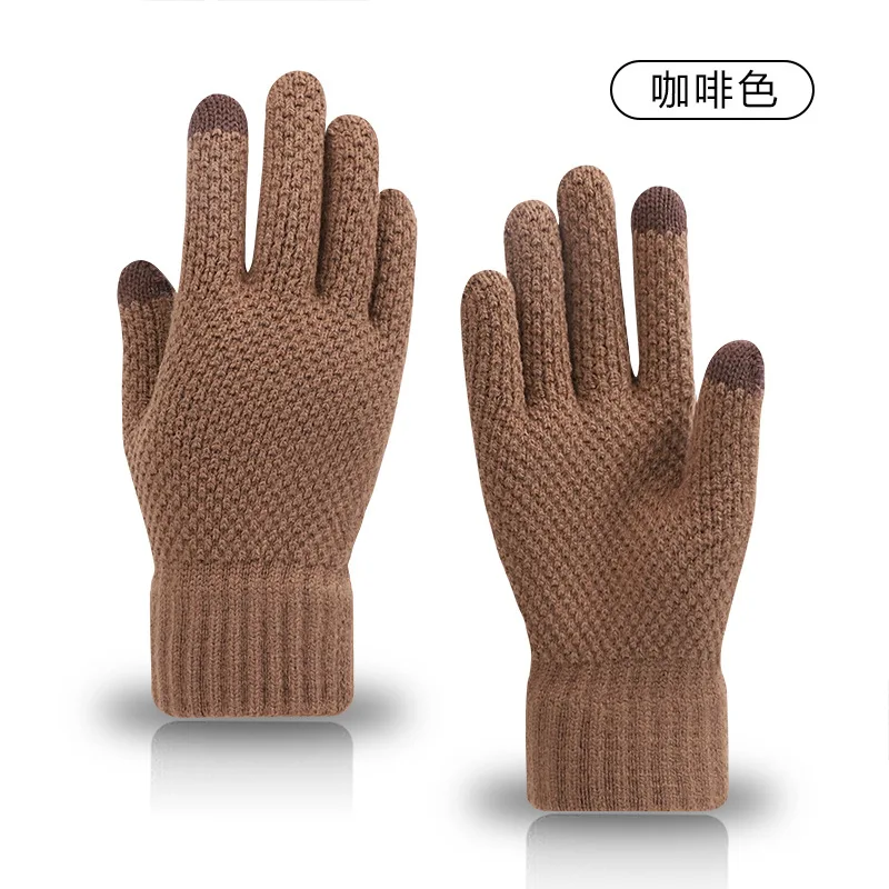 Comprar Guantes cálidos de invierno para hombre y mujer, Manoplas de punto elástico, de dedo completo, de ganchillo