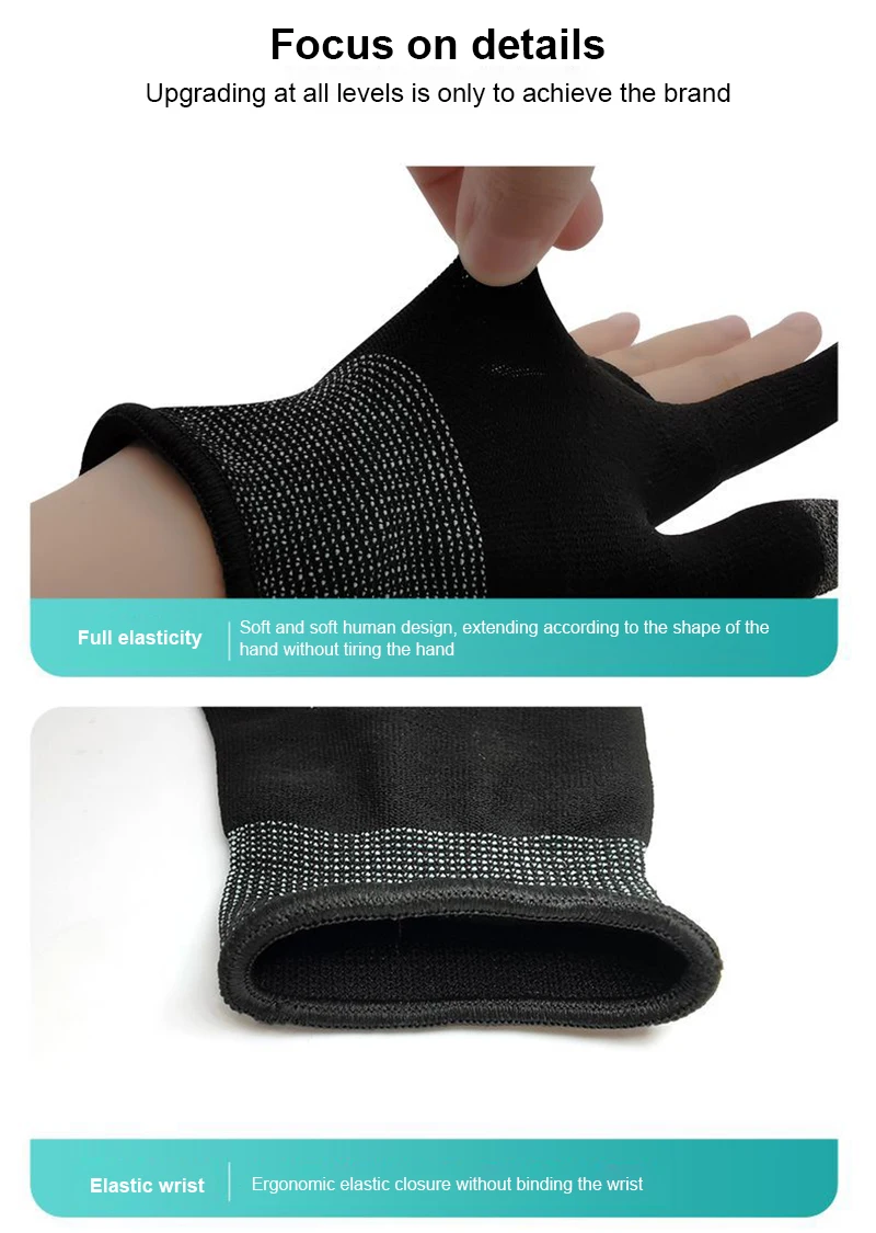 Los guantes son de nylon finamente tejidos, el dedo de fibra plateada es tan ligero como nada cuando se usa en la mano. El material delgado y ligero proporciona buena transpirabilidad y resiste el calor sofocante.