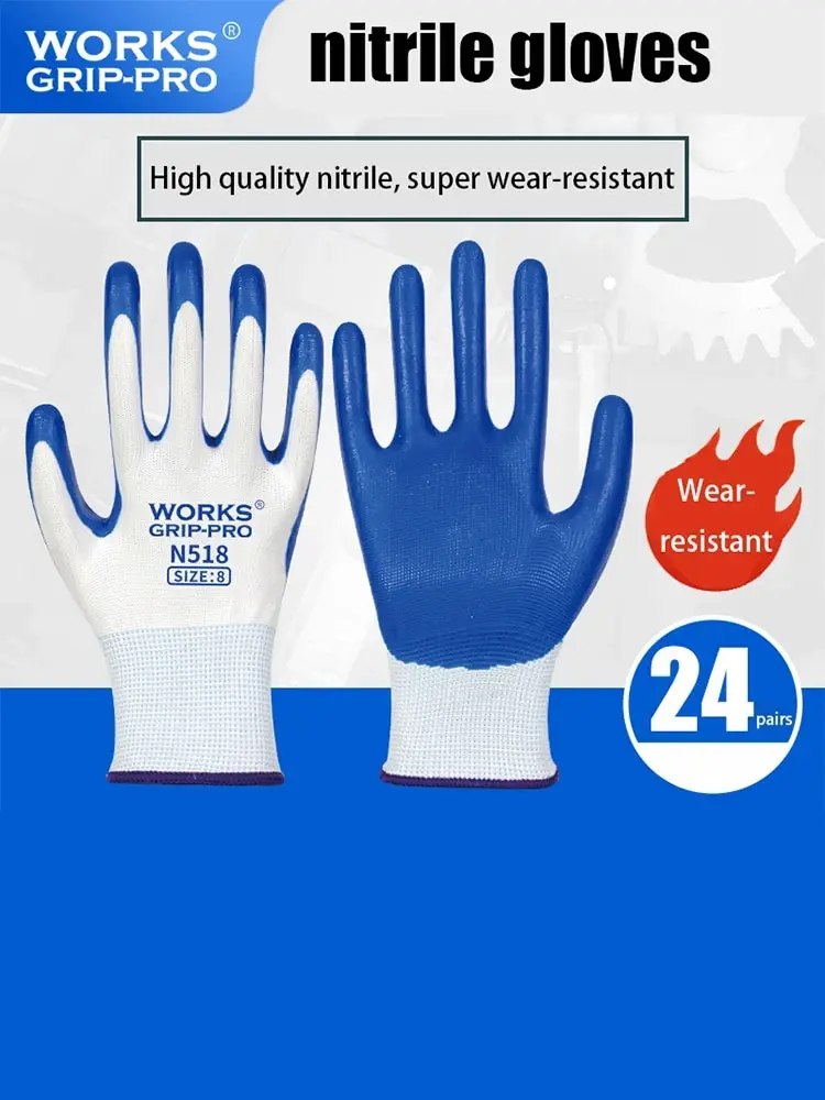 Comprar Guantes de nitrilo antideslizantes, resistentes al desgaste, transpirables, trabajo Industrial, construcción, seguridad, trabajo, 24 pares