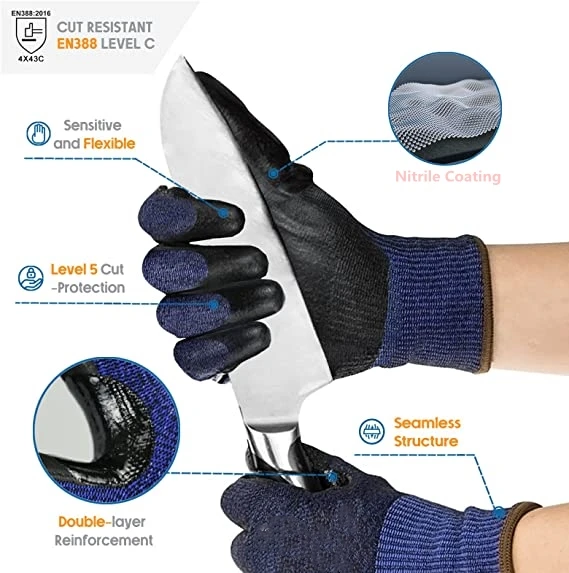 Comprar Guantes resistentes al nivel 5, manoplas antideslizantes firmes, trabajo pesado, espuma de nitrilo duradera y transpirable recubierta, pantalla táctil, 1 par, 3 pares