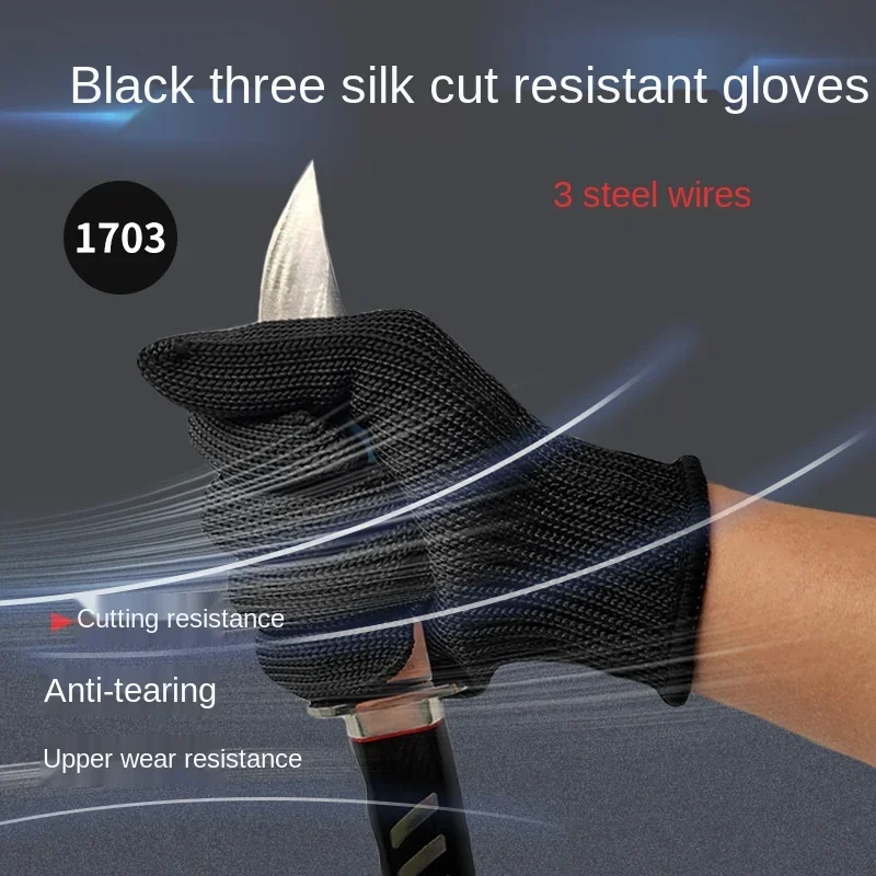 Comprar Guantes de seguridad de trabajo anticorte, protectores de Metal negro, resistentes a Cortes, alambre de acero inoxidable, guantes de carnicero, Nivel 5, 1 par