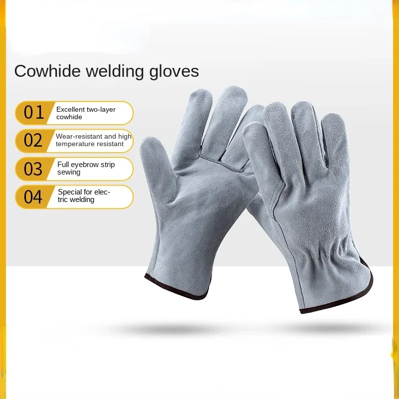 Guantes de trabajo 100% de cuero de vaca de alta calidad, resistentes al desgaste para mecánicos, trabajo de jardinería, barbacoa, suministros de seguridad de corte, 1 par