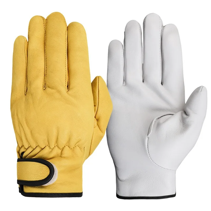Comprar Guantes de trabajo de cuero, muñeca elástica, guante de trabajo de piel de oveja resistente, muñeca tejida resistente, respaldo de lona, suministros de seguridad