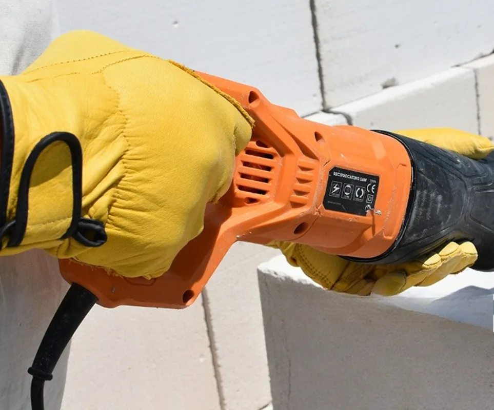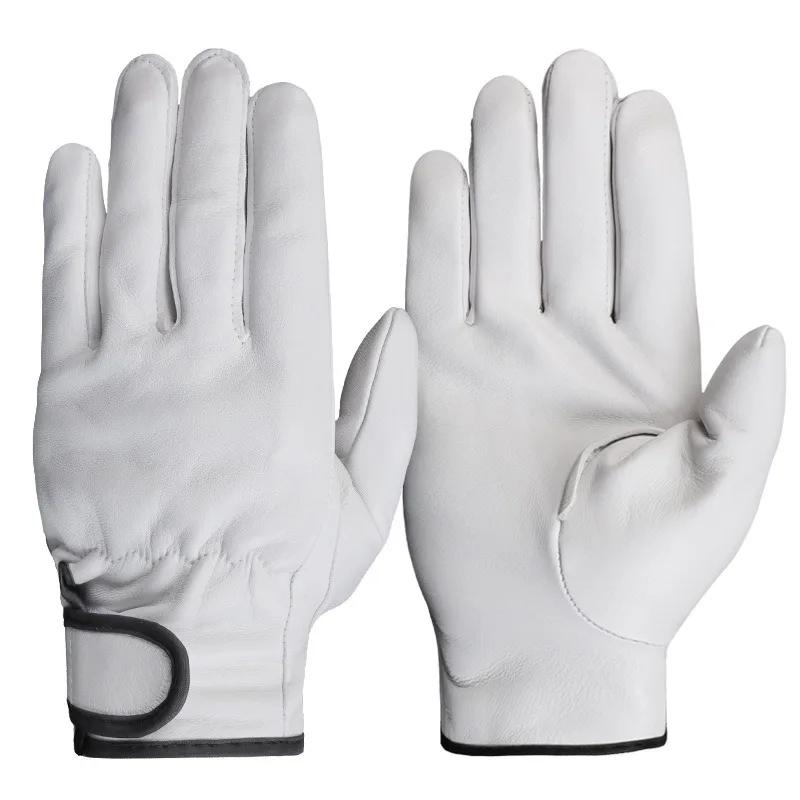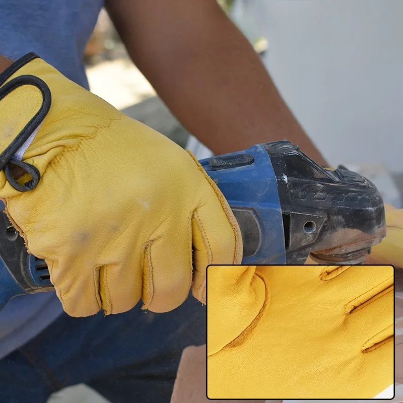 Guantes de trabajo de cuero, muñeca elástica, guante de trabajo de piel de oveja resistente, muñeca tejida resistente, respaldo de lona, suministros de seguridad