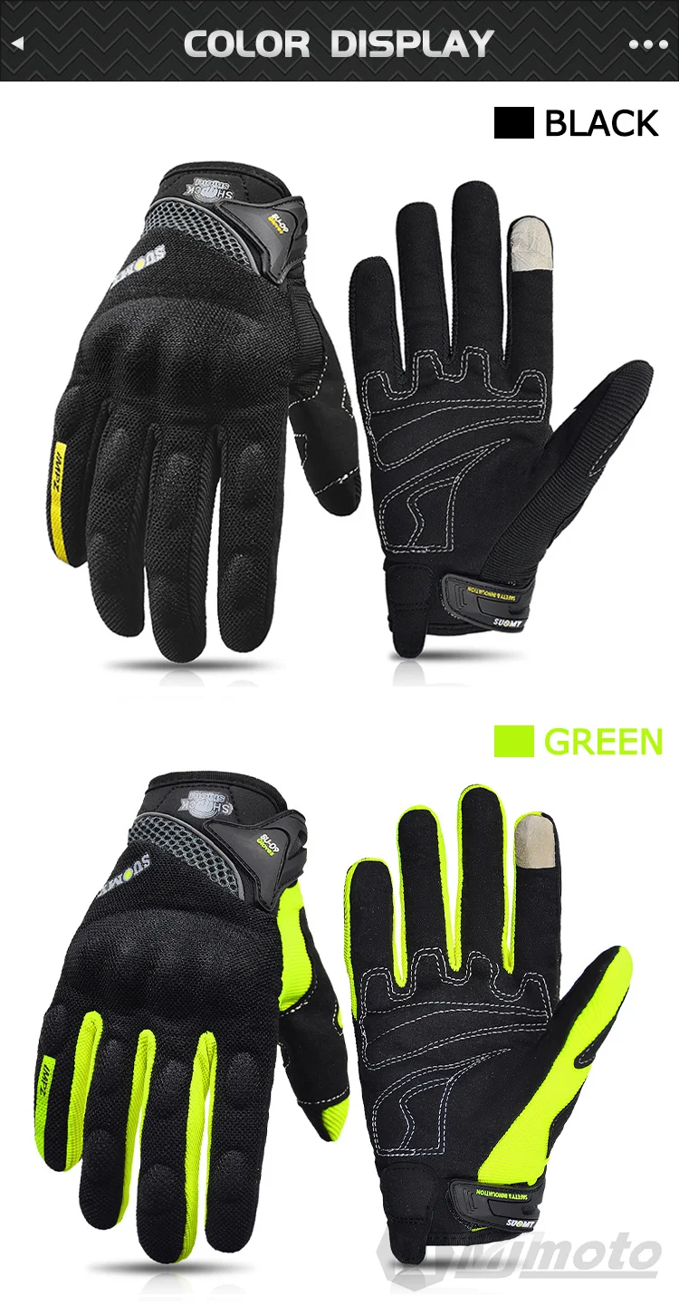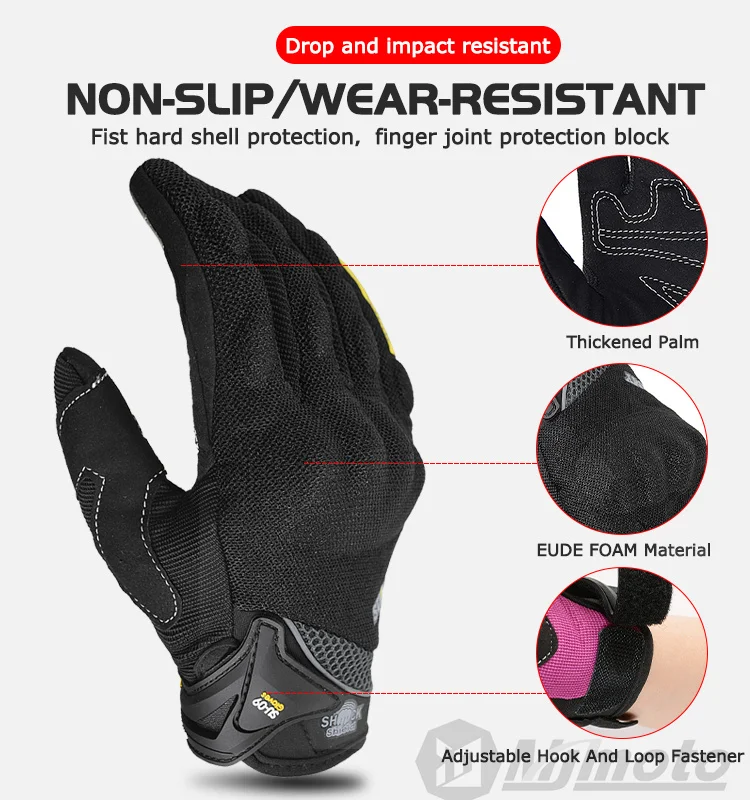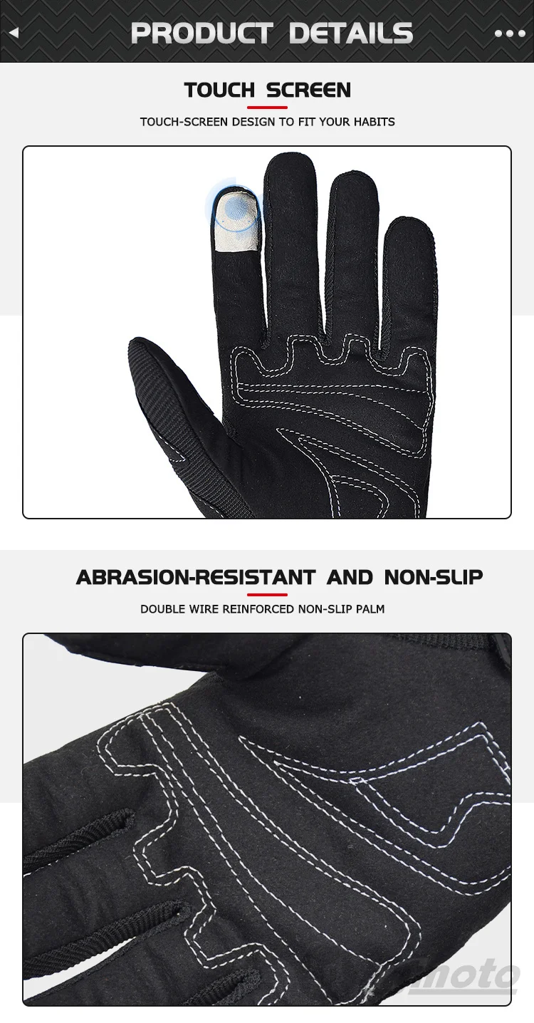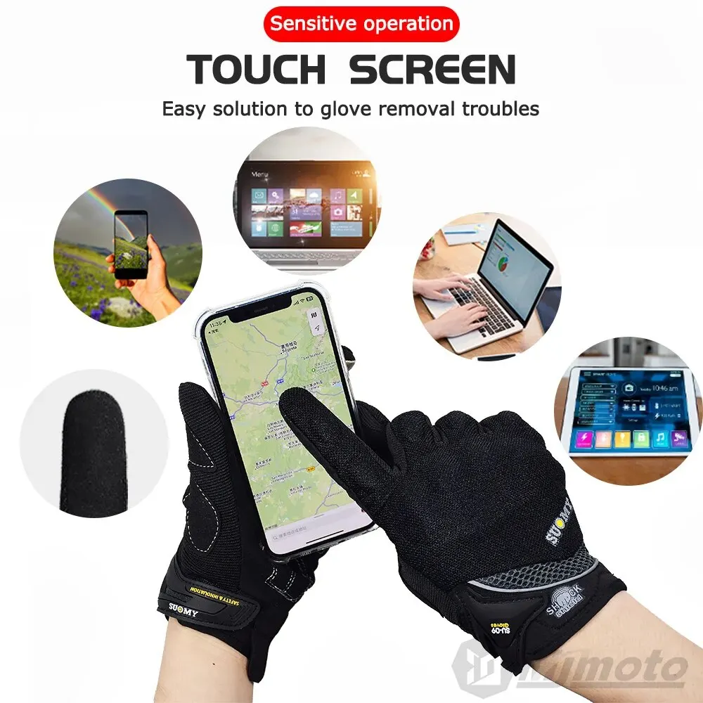 Comprar Guantes transpirables de dedo completo para motocicleta, guantes antideslizantes de calidad, resistentes, decorados, talla M-XXL, color negro