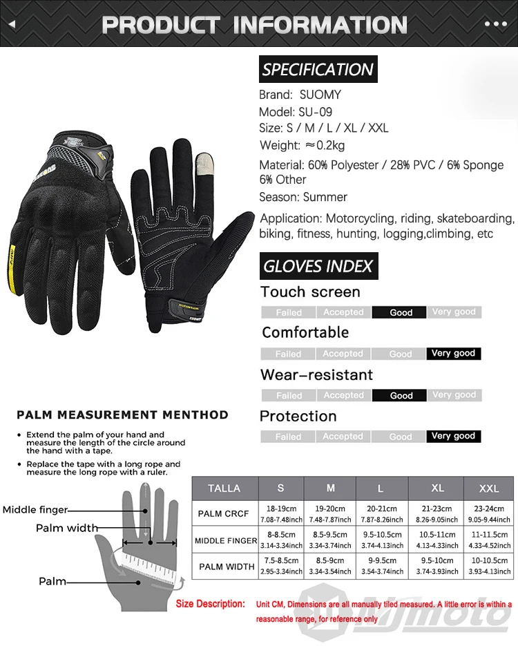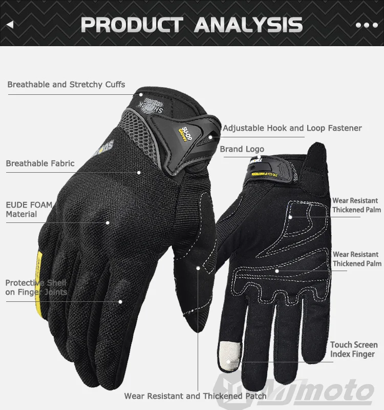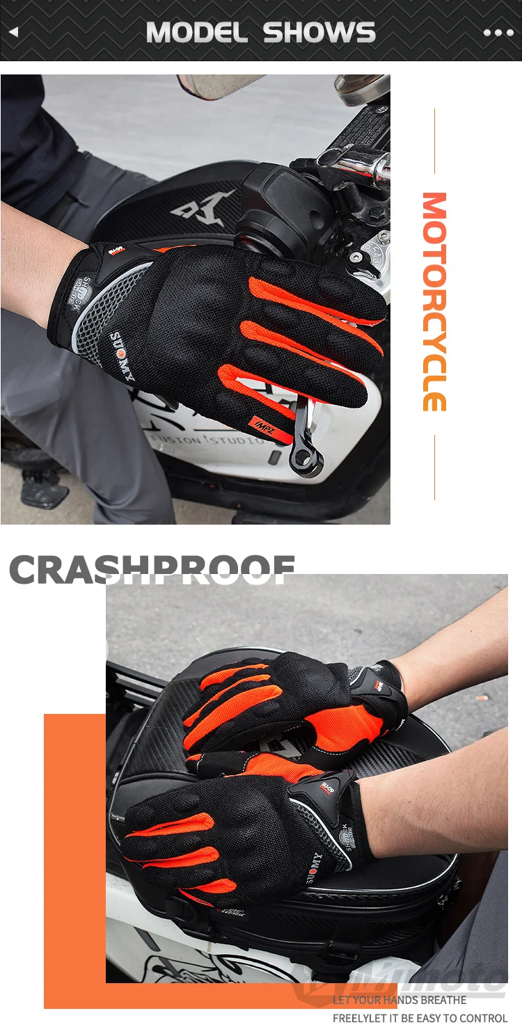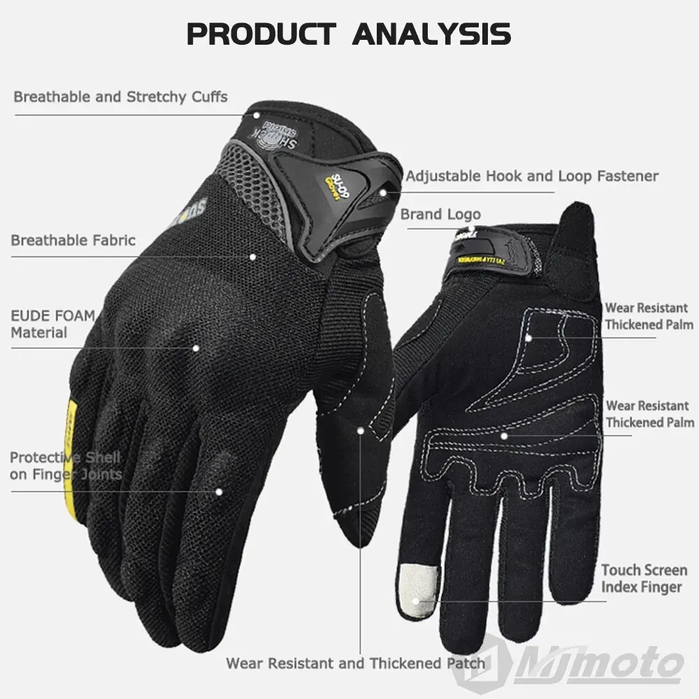Comprar Guantes transpirables de dedo completo para motocicleta, guantes antideslizantes de calidad, resistentes, decorados, talla M-XXL, color negro