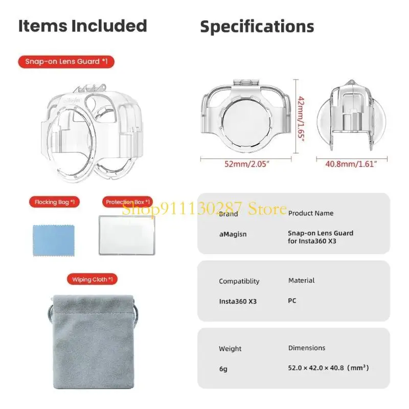 Características:La cubierta protectora de la lente antivaho es compatible con la cámara deportiva 360 X3, lo que brinda protección integral para la lente.