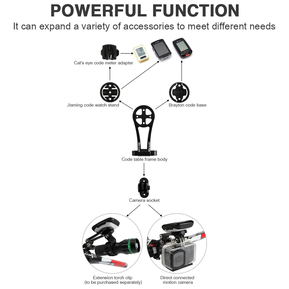 Feature: 1. Save the space of the bicycle handlebar: It can be equipped with a sports camera or a round bicycle light (the bicycle light clip is not included), which saves space and is more neat and beautiful; 2. 3 types of computer bases: compatible with most of Garmin, Bryton, cat's eye , etc.; 3. Stem installation, central viewing angle: keep the stopwatch in front of the stem, and the viewing angle is more comfortable; 4. Adjustable angle: humanized design of adjustable inclination angle. Specification: Main material: aluminum alloy Product color: Black Product size: about 83x48x25mm/3.27*1.89*0.98in Net weight: about 36g Support computer: for Garmin series, cat's eye series, Bryton series Note: Due to the different monitor and light effect, the actual color of the item might be slightly different from the color showed on the pictures. Thank you! Please allow 1-3cm measuring deviation due to manual measurement. ![]() ![]() ![]() ![]() ![]() ![]() ![]() ![]() ![]() ![]() ![]() ![]() ![]() ![]() ![]() ![]() ![]() |