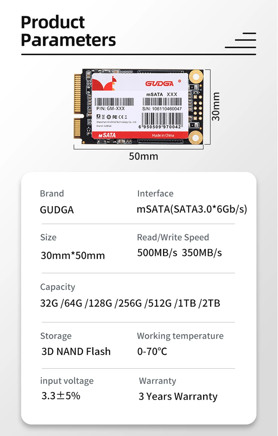 Comprar GUDGA-disco duro interno de estado sólido para ordenador portátil Hp, 10 piezas, msata ssd SATAIII, 64GB, 128GB, 256GB, 1TB HDD, 3x5cm