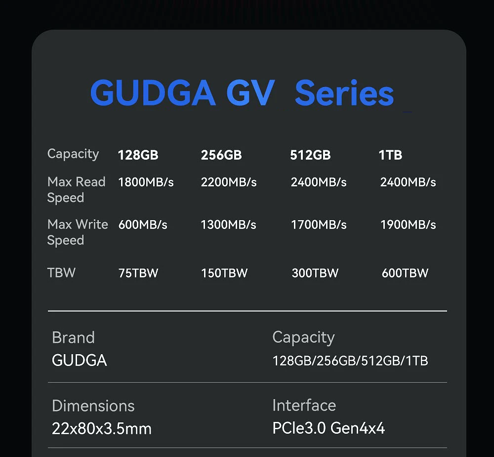 Interfaz: PCIe NVME Gen 3,0x4 carriles (M-Key)