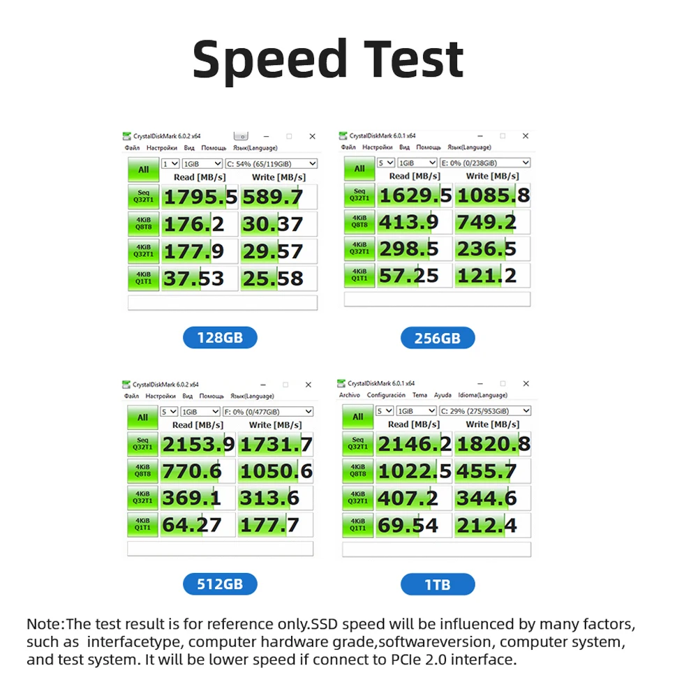 1TB: Lectura (máx.) hasta 2000 MB/s/Escritura (máx.) hasta 1600 MB/s.