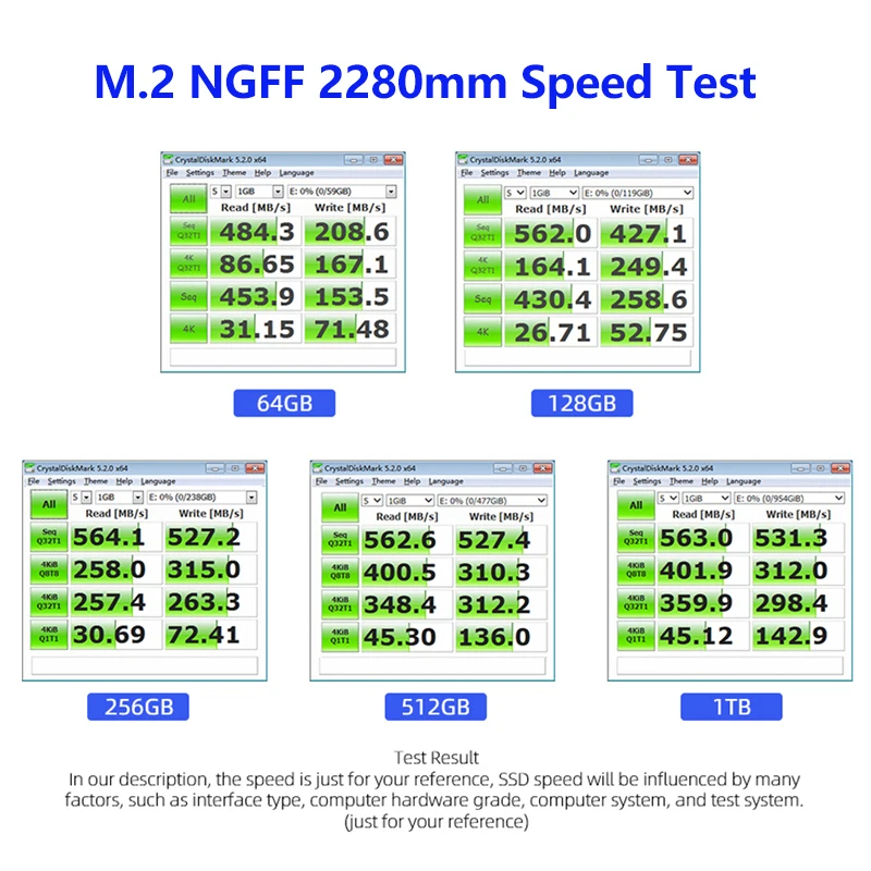(8G≈7,3G, 16G≈14.5G, 32G≈28,6G, 64≈58G, 128G≈118G, 256G≈230.4G, 512G≈476G, 1TB≈930G, 2TB≈1870G)