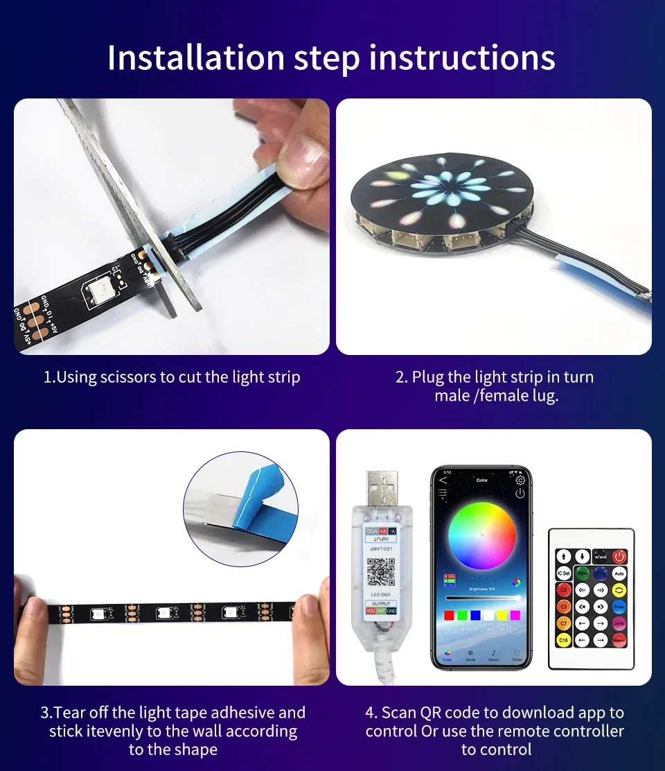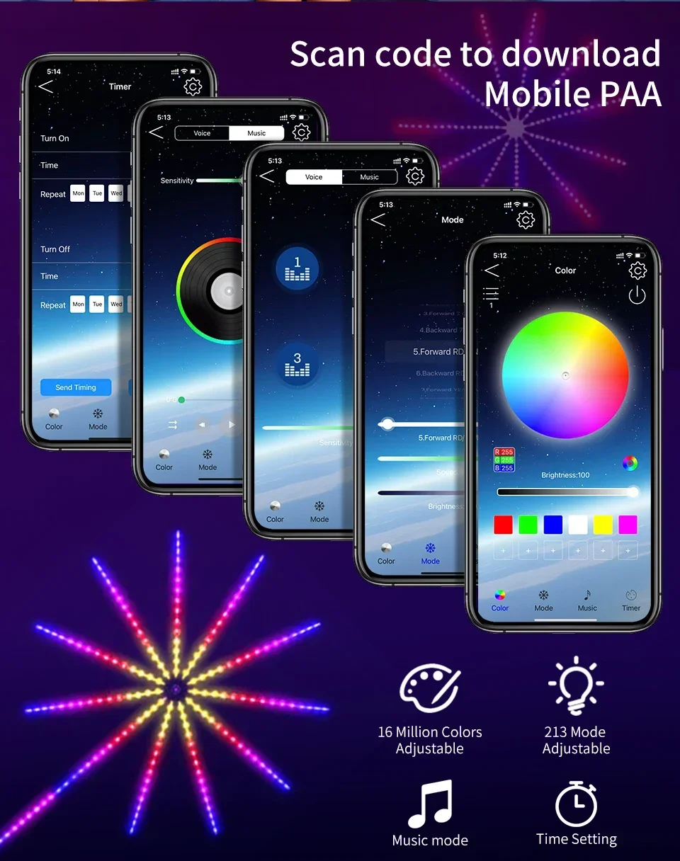 Efectos de luz muy bonitos con control remoto. Lamentablemente la aplicación no funciona.