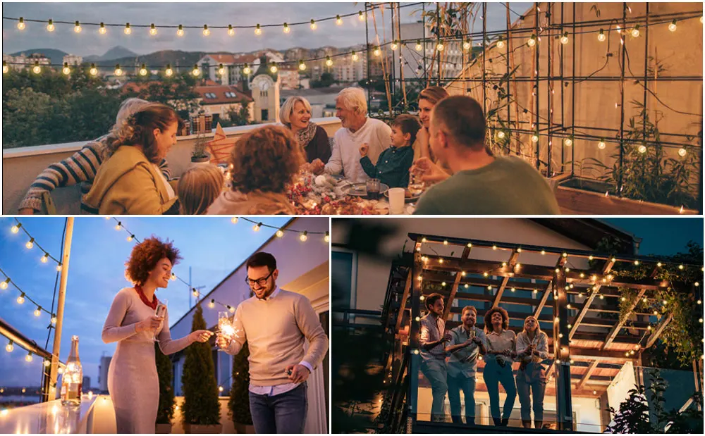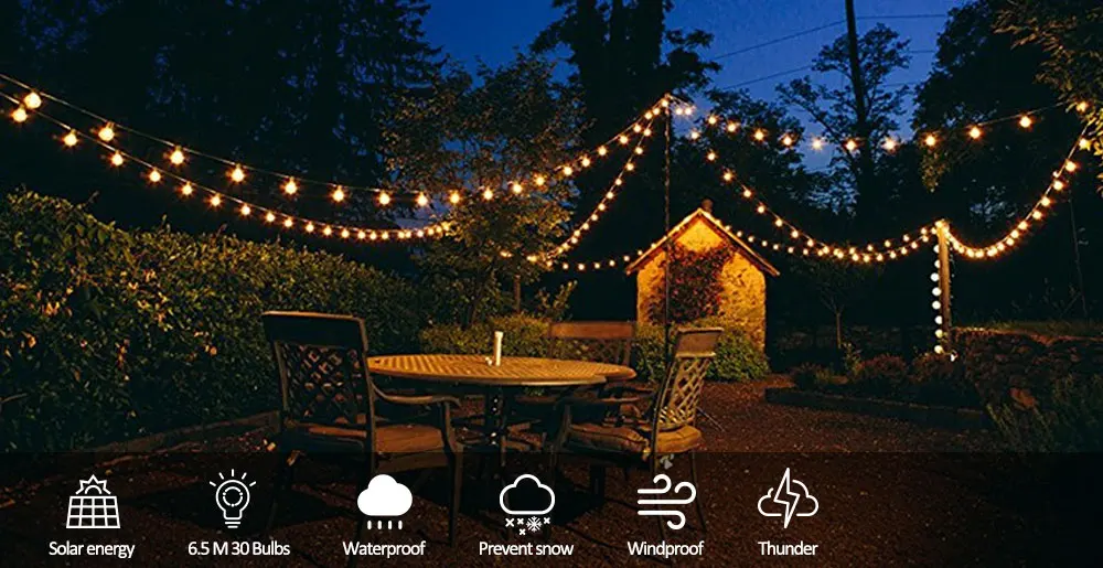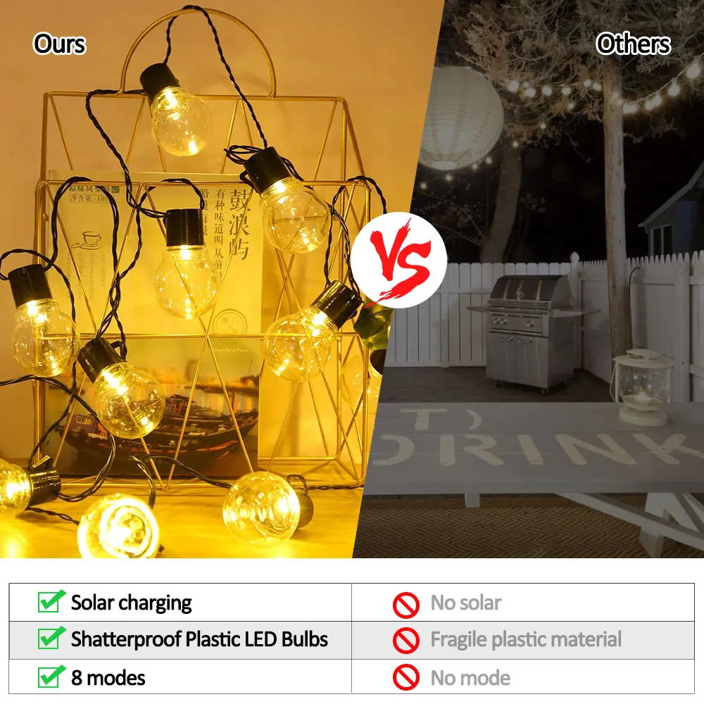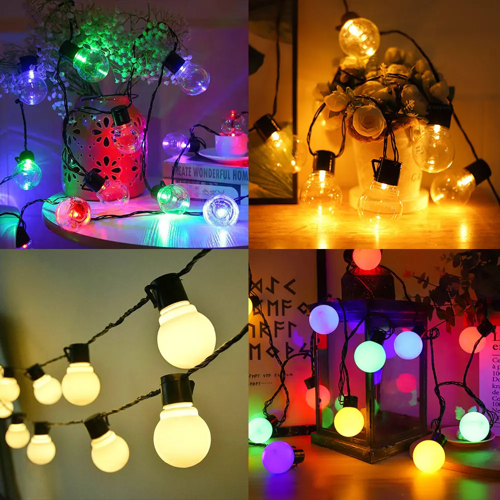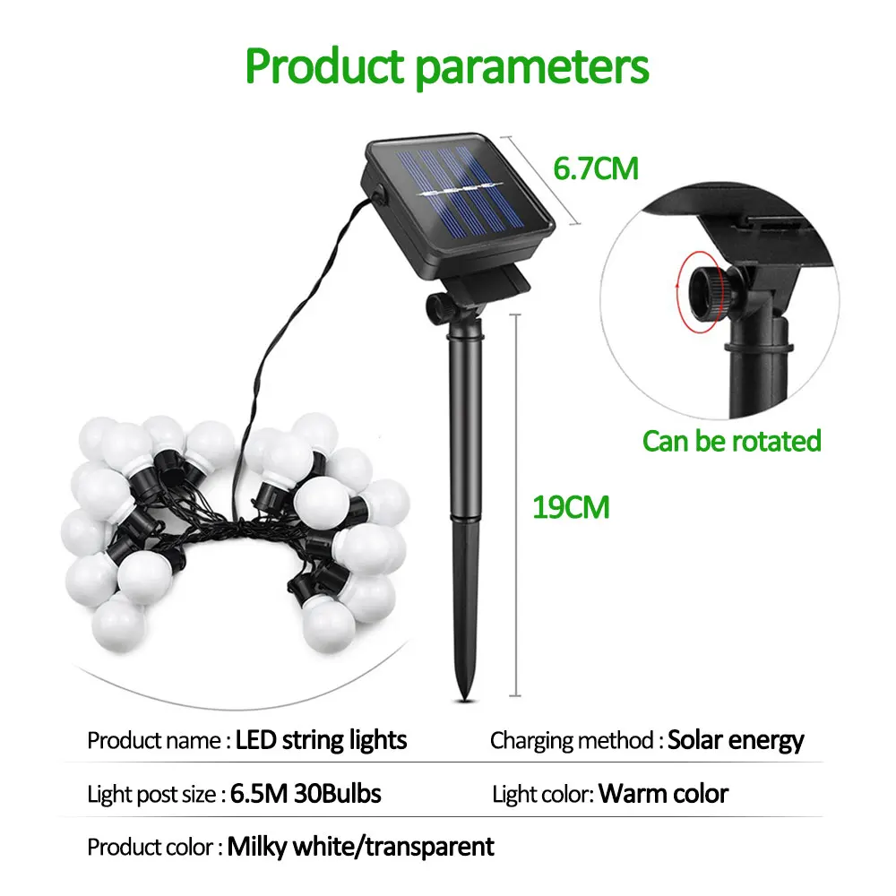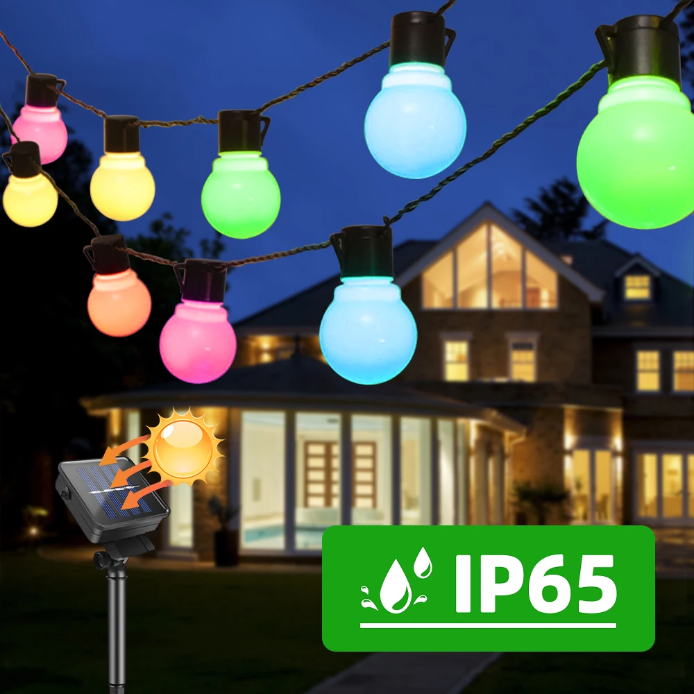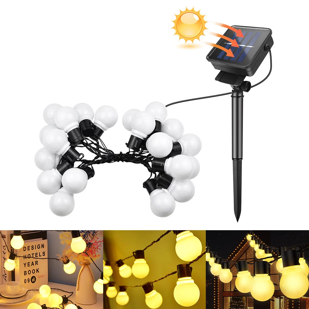 Comprar Guirnalda de luces solares para exteriores, 10/20/30 LED, globo G50, seguro, conveniente y duradero, cadena de luces de hadas para exteriores