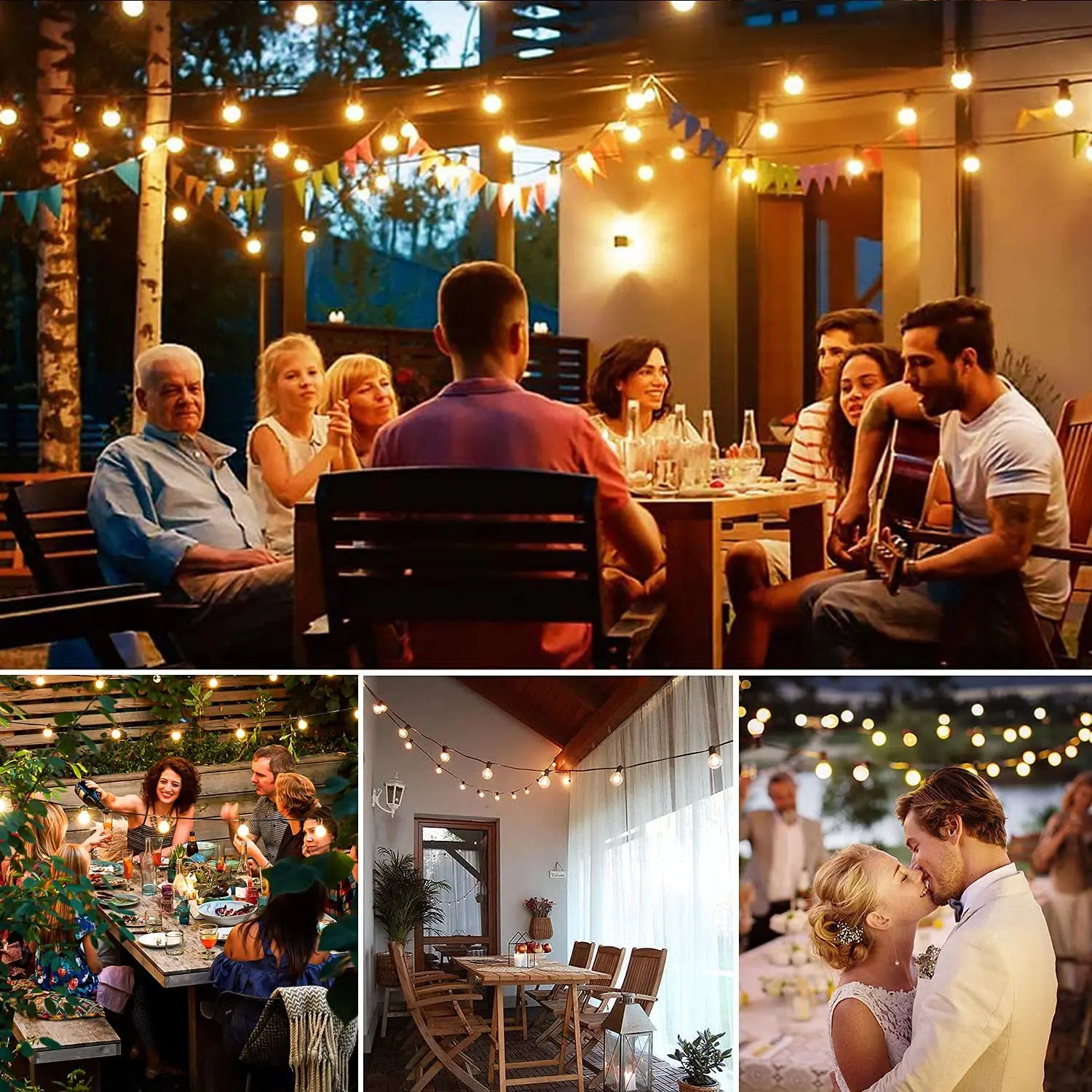 Las luces de cadena para exteriores se pueden utilizar en cualquier ocasión para crear un ambiente cálido y feliz, como bodas, reuniones, fiestas, pérgola, todas las decoraciones para exteriores e interiores.