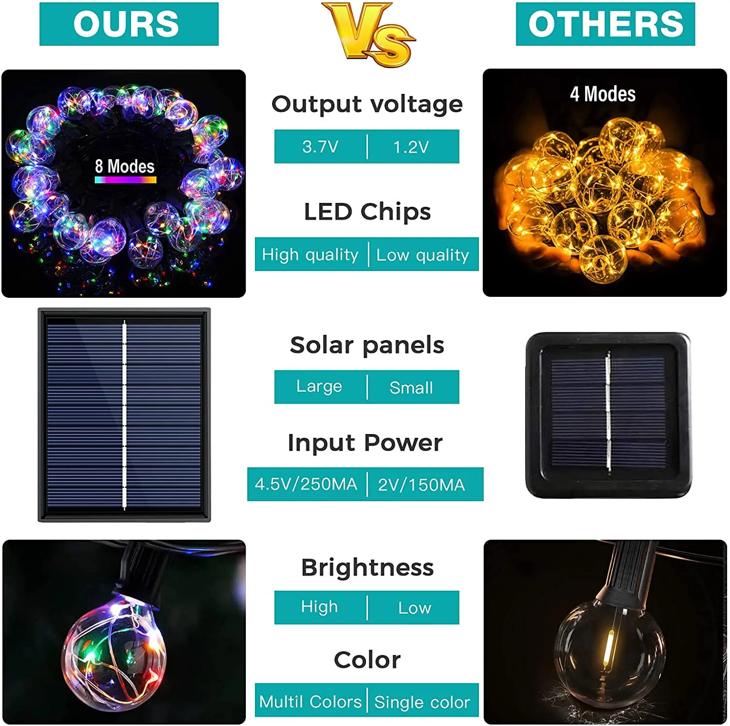Comprar Guirnalda de luces solares para Patio, luces colgantes impermeables exteriores, 8 modos de luz, decoración de fiesta para Patio trasero, Bistro, balcón, pérgola, G40