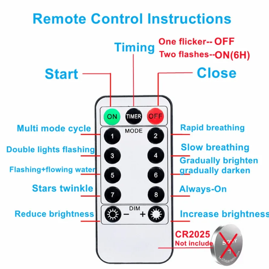 【8 modos de iluminación】: combinación, onda, secuencial, brillo lento, persecución/flash, desvanecimiento, brillo/flash, encendido estable.