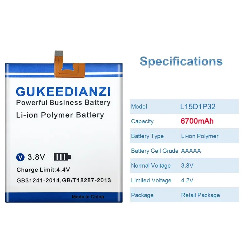 Comprar GUKEEDIANZI-Batería de gran potencia para Lenovo, pila de 6700mAh, L15D1P32, PB1-750, PB1-750N, PB1-750M, PB1-750P, PHAB, TD-LTE
