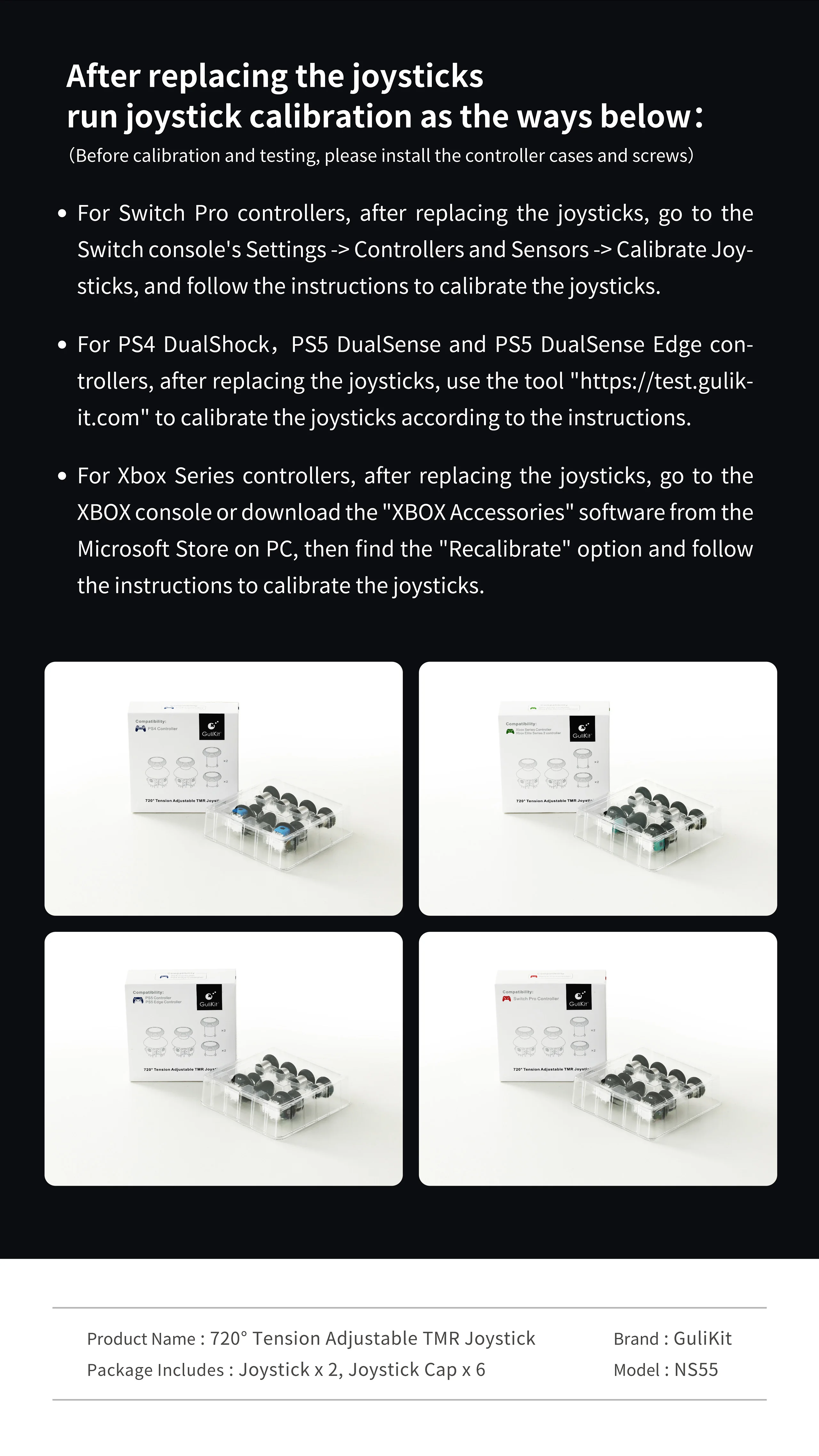 Gulikit 720°Joystick TMR ajustable de tensión NS55, Joystick para reparación de reemplazo para PS4 PS5 Switch Xbox Controller sin deriva