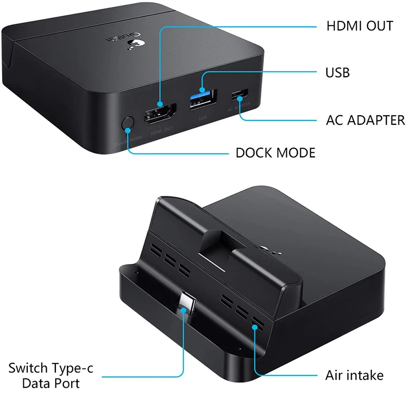 Gulikit NS05 Estación de acoplamiento portátil Soportes de cargador de acoplamiento para SWITCH Adaptador de soporte de estación de acoplamiento USB 3,0 Soporte de base