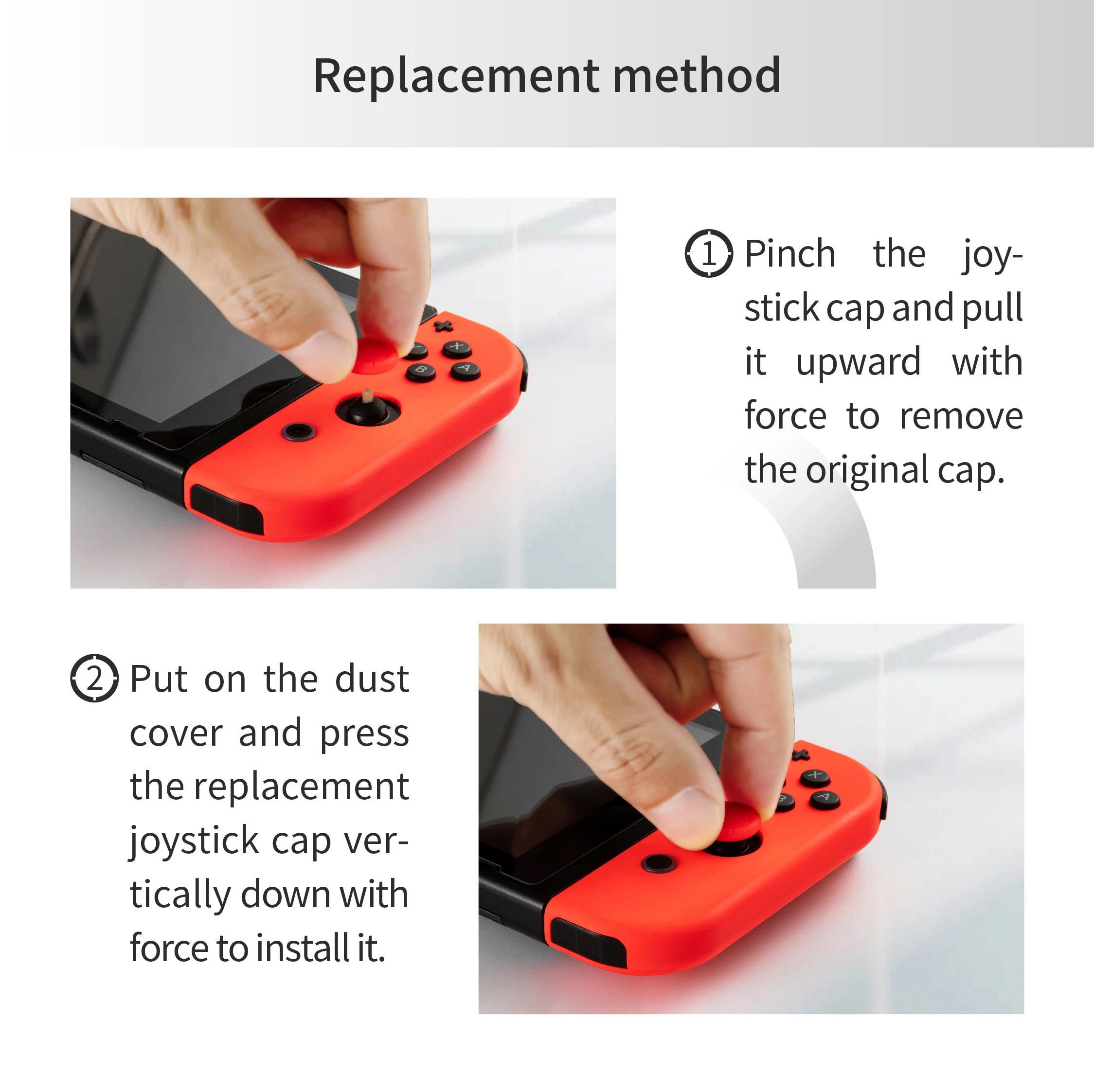 2. Coloque la cubierta antipolvo y presione la tapa del joystick de repuesto verticalmente hacia abajo con fuerza para instalarlo.