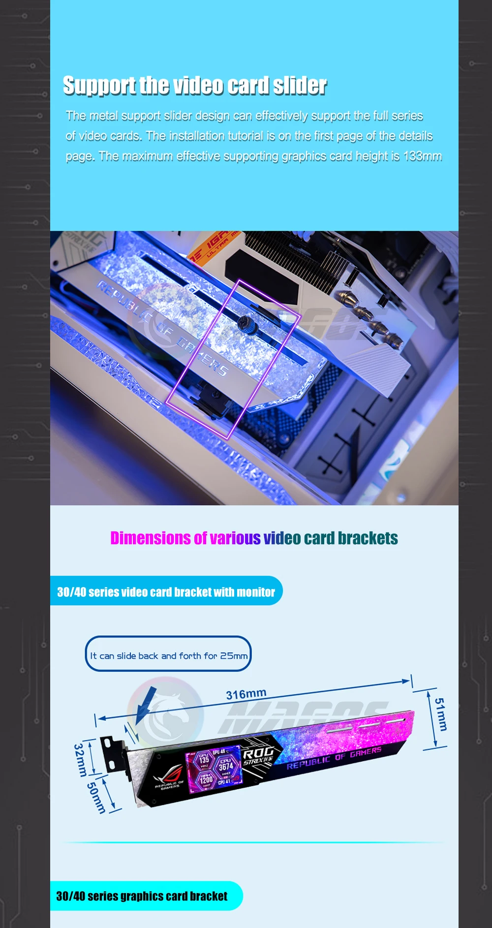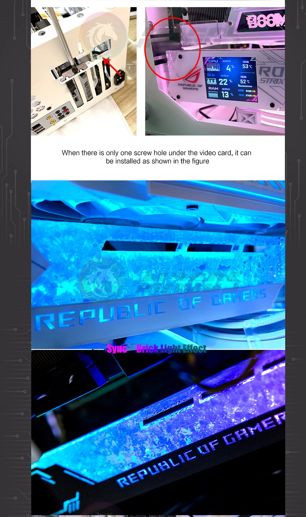 Gundam ROG-Soporte de tarjeta gráfica RGB GPU, Monitor de temperatura de 2,2 pulgadas, soporte VGA, PC Gamer, gabinete de bricolaje, sincronización de 12V/5V