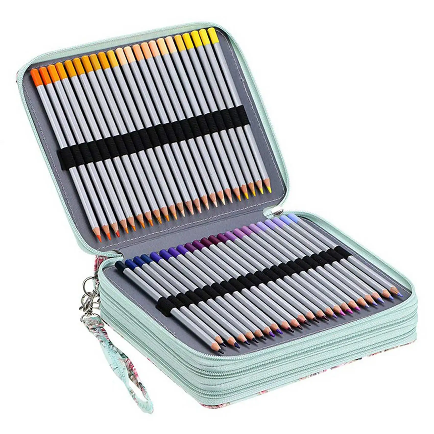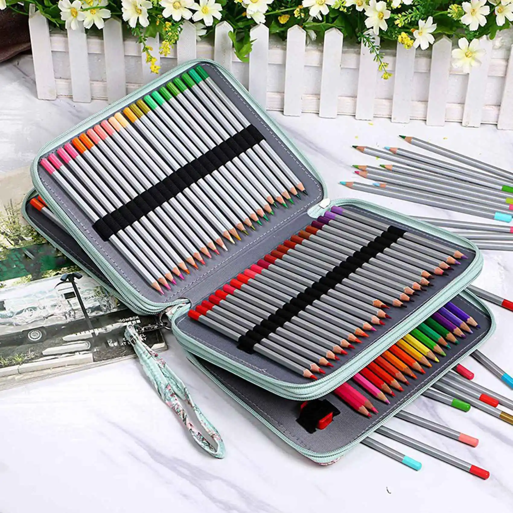 Diseño portátil: este estuche para lápices de colores 120 es útil para todo y en todas partes, artículo perfecto cuando viaja con lápices, la correa del asa se puede quitar