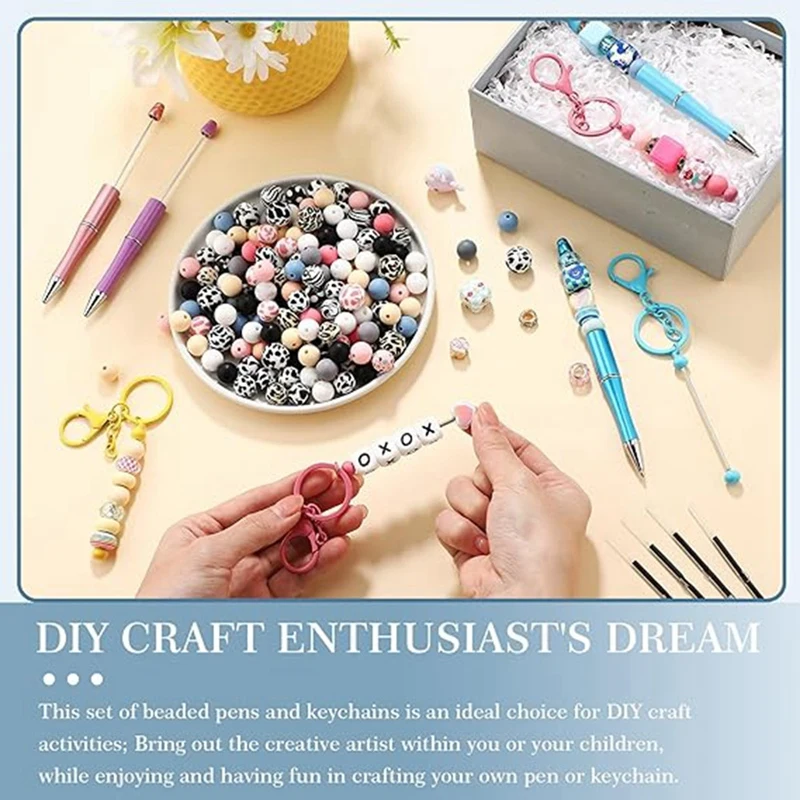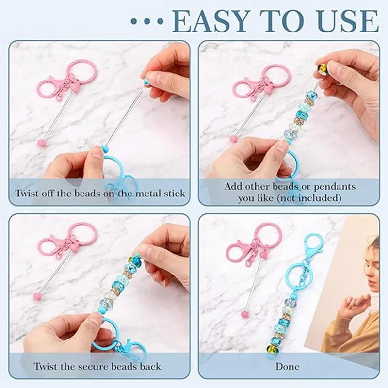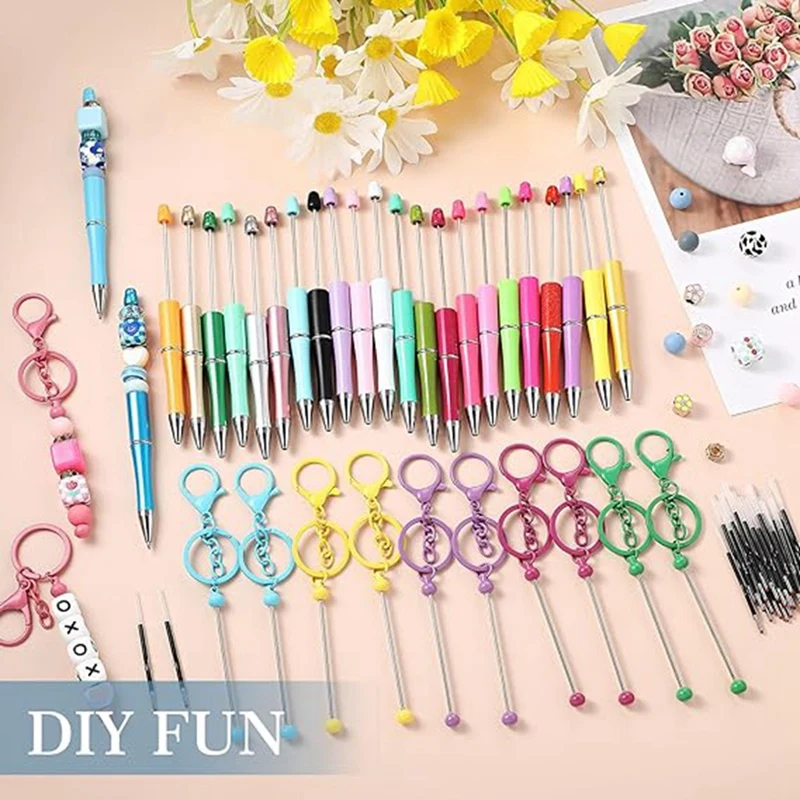 RESISTENTE Y DURADERO: Cada uno de nuestros juegos de bolígrafos y llaveros de cuentas está hecho principalmente de metal para mayor durabilidad; Los llaveros de cuentas están hechos de plástico resistente para mantener su apariencia; Cuente con nuestros productos de calidad para un servicio a largo plazo