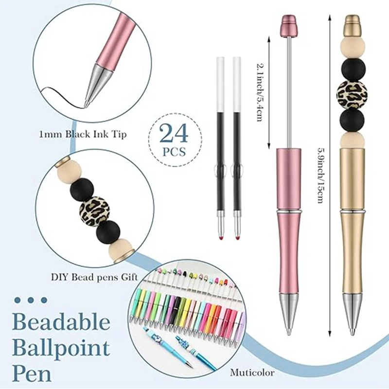 IMPRESIONANTES OFERTAS DE EMBALAJE: Con nuestras ofertas, no solo obtienes algunas piezas; Te damos 24 bolígrafos con cuentas, 12 llaveros con cuentas y 24 recambios, perfectos para fiestas de manualidades con cuentas o uso personal.