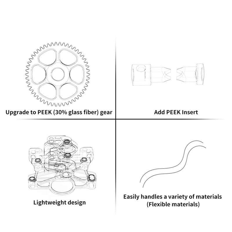 Los engranajes POM se actualizan a engranajes PEEK (30% fibra de vidrio).El material PEEK tiene excelentes propiedades como resistencia a altas temperaturas, aislamiento térmico y resistencia al desgaste, que pueden bloquear eficazmente el calor generado por el motor y resolver el problema de bloqueo.