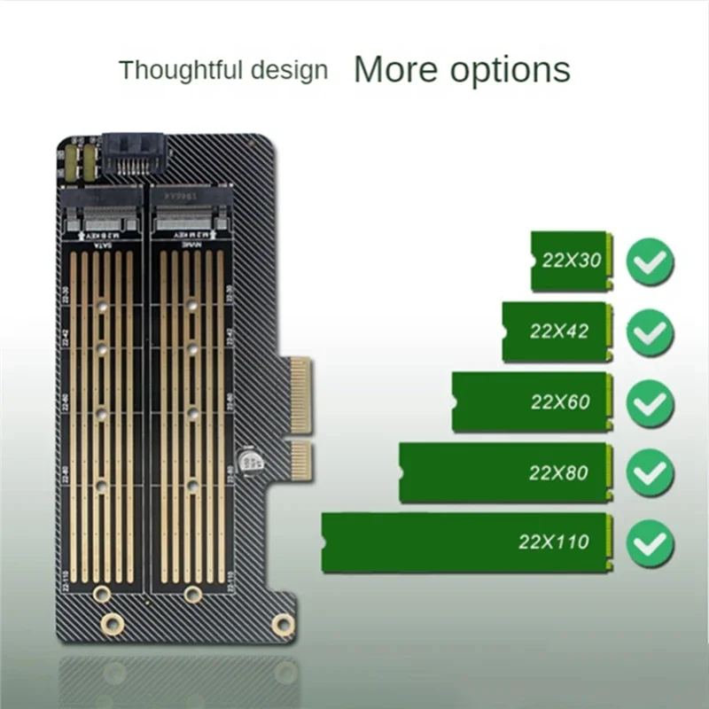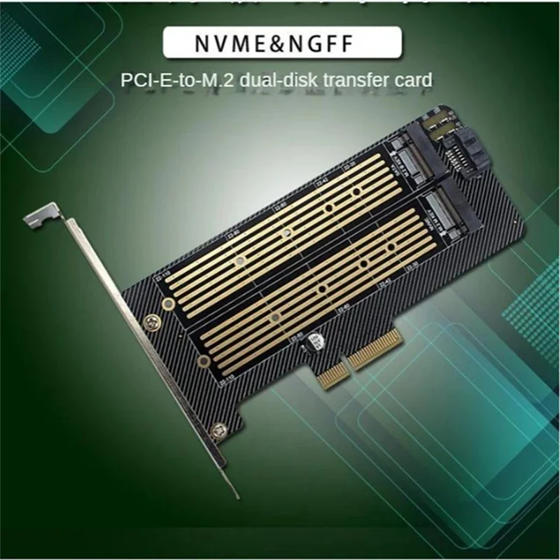 Disipación de calor más completa La interfaz PCI-E generalmente admite el uso de placa base con interfaz de ranura para tarjeta X4 / X8 / x16 La actualización de la computadora es una tarjeta adaptadora de disco dual urgente nvme y ngff PCI-E a m.2 Mejore el rendimiento del disco duro y acelere la transferencia de archivos