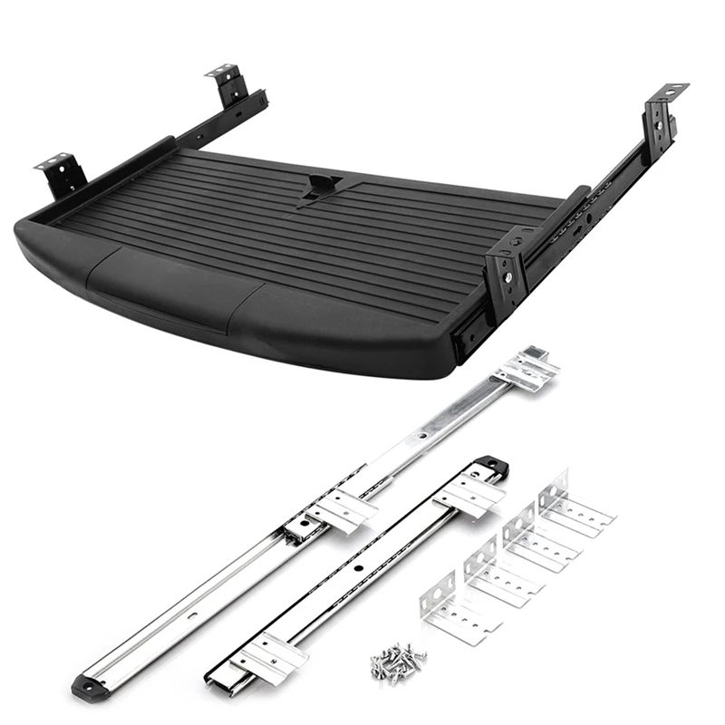 Construcción duradera: fabricada con materiales de alta calidad, la bandeja deslizante para teclado está diseñada para durar, lo que garantiza confiabilidad y durabilidad para el uso diario.