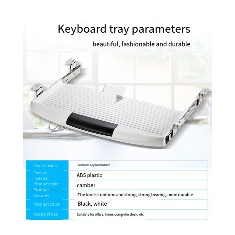 Tamaño conveniente: esta bandeja para teclado se adapta a la mayoría de los teclados estándar, proporcionando un amplio espacio para sus necesidades de escritura mientras mantiene su escritorio ordenado.