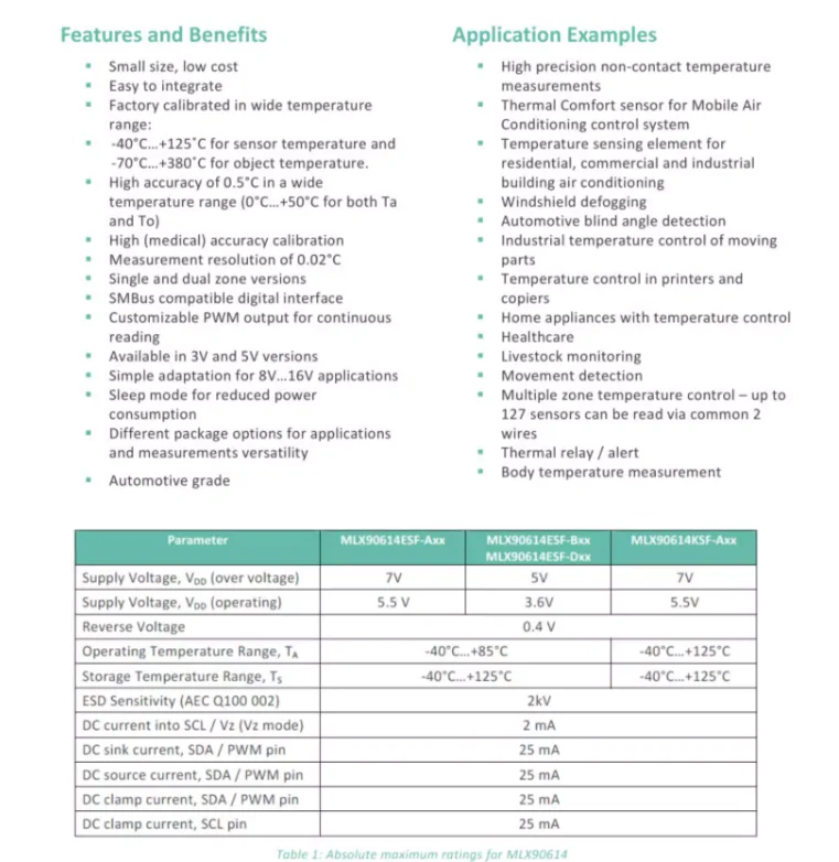 Parámetros del productoModelo de chip: MLX90614-DCI