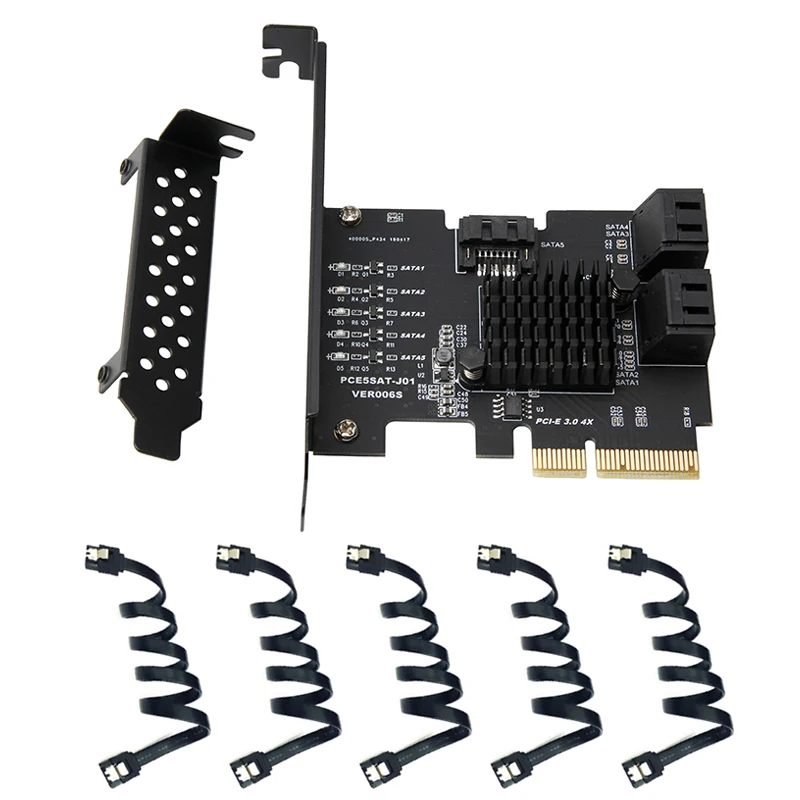 Comprar H1111Z añadir en tarjetas PCIE SATA controlador PCI-E SATA Hub/tarjeta PCIE a SATA 3,0 Tarjeta 5 puertos SATA3 SSD PCI Express X4 Gen3 adaptador