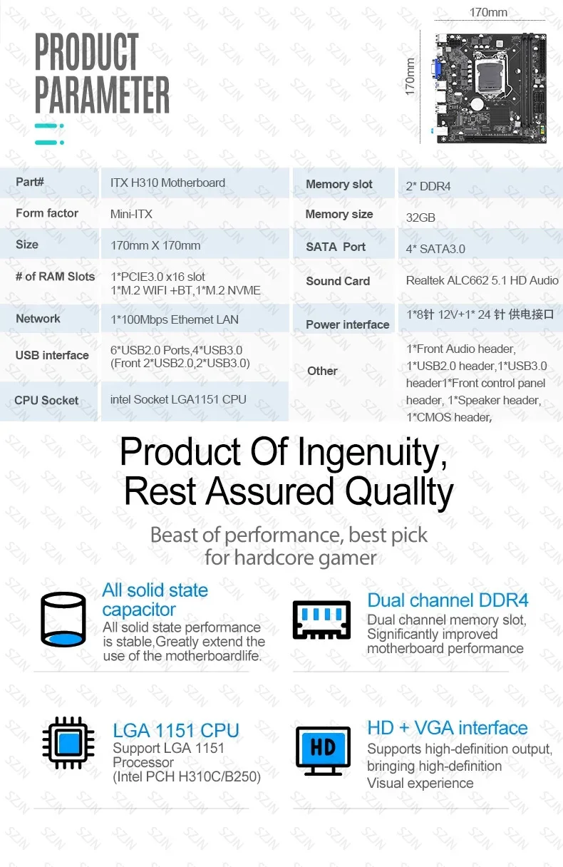Comprar H310 ITX Motherboartd Set LGA1151 procesador DDR4 de doble canal con enfriador de CPU compatible con M2 NVME 4 * SATA3.0 M2-WIFI Kit de juegos
