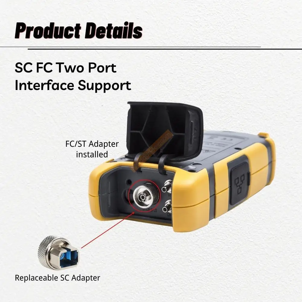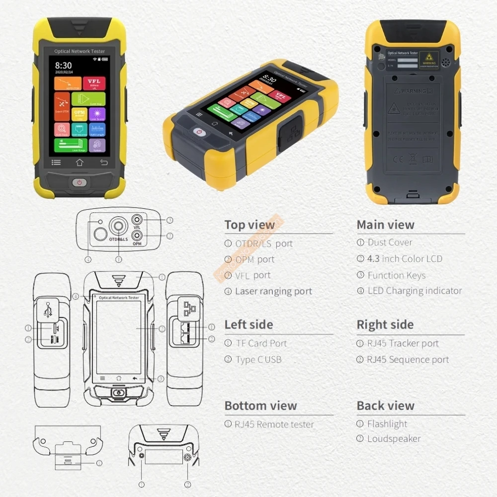 Puede cumplir con varios requisitos de prueba en diferentes ocasiones. OTDR tiene 1m de área ciega de evento ultracorto, el rango dinámico máximo es 32dB, 8G de almacenamiento que puede almacenar 200000 curvas; utiliza una batería de polímero de litio de alta densidad y alta capacidad de 4000mAh, y el tiempo de funcionamiento es de más de 10 horas con alto brillo. Tiene una precisión de prueba precisa y capacidad de recopilación de información, y el potente software de análisis interno puede proporcionar un servicio de datos preciso para los probadores de terminales.