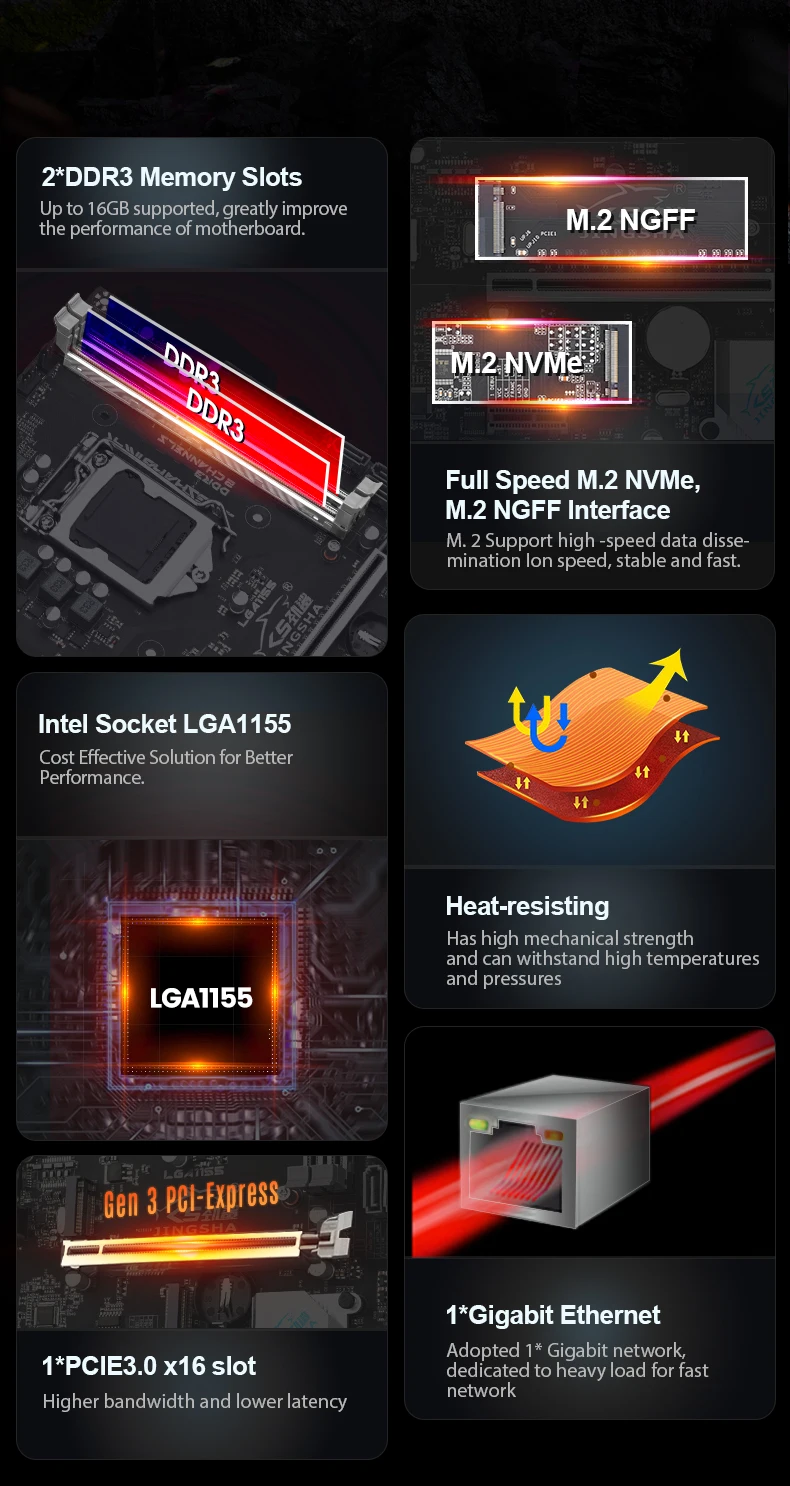 Placa base de escritorio LGA 1155 CPU para NVME NGFF M.2 2280 SSD VGA HDMI-compatible 2 * DDR3 memoria RJ45 USB 2,0 SATA 2,0 16GB