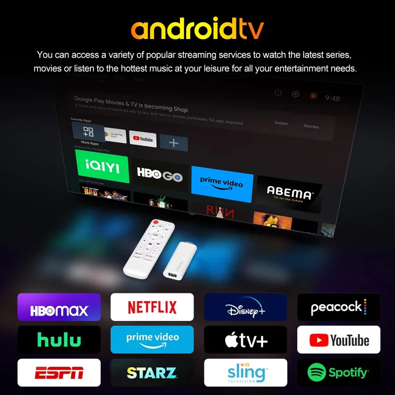 The H313 TV stick supports popular streaming platforms such as YouTube, Netflix, Amazon Prime Video, and Google Play, through which users can watch a variety of film and television content. In addition, it also supports the Google Assistant voice assistant feature, which users can search and control through voice commands.