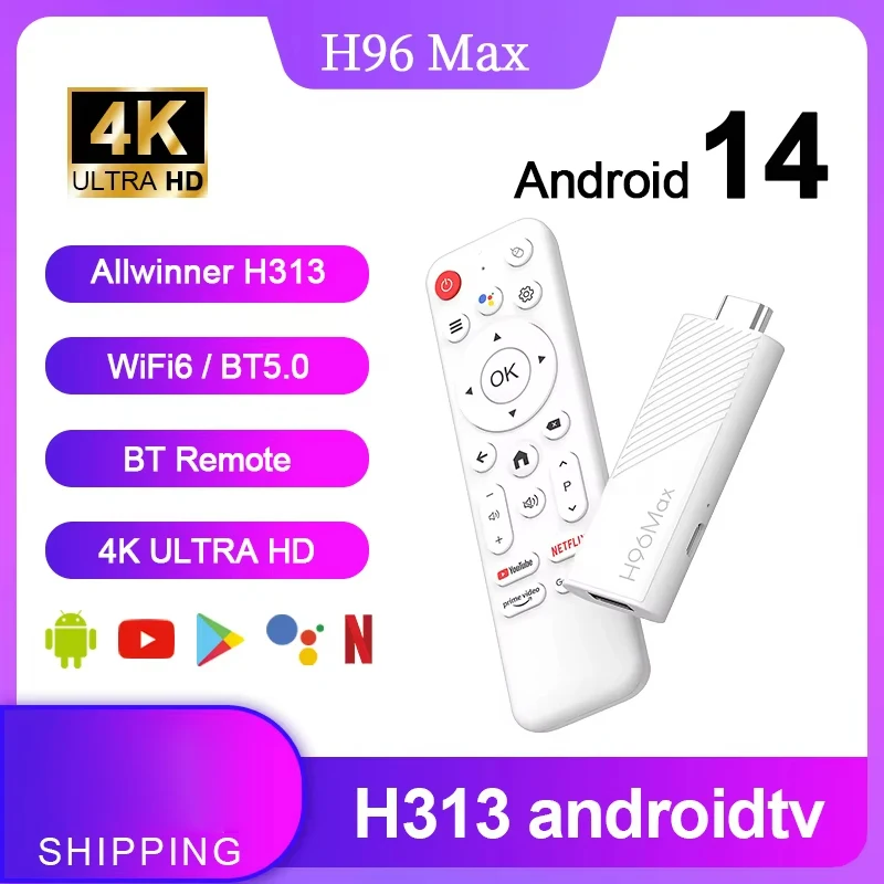2024 H96 MAX H313 TV Stick Android 14 2GB 16GB 8GB Dual Wifi6 BT5.0 4K HD Media Player TV Stick