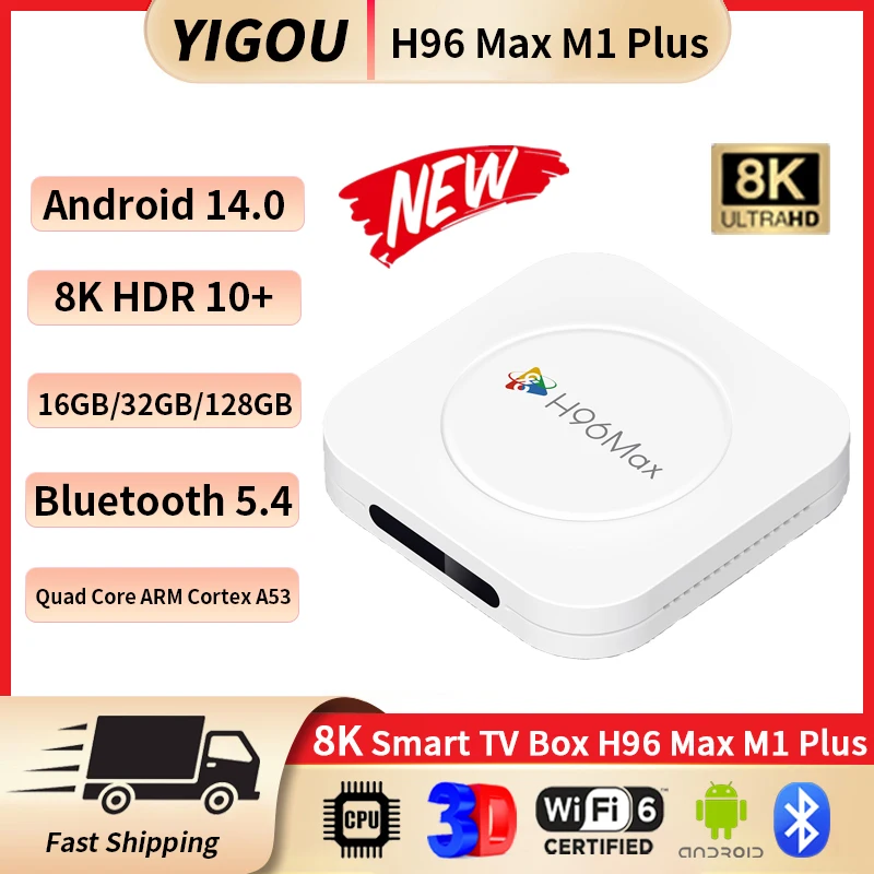 H96 MAX M1 PLUS Nuevo Smart TV Box Android 14 Smart TV Box RK3528 4GB 128GB Wifi6 BT5.4 8K HD Google Voice Assistant Reproductor multimedia