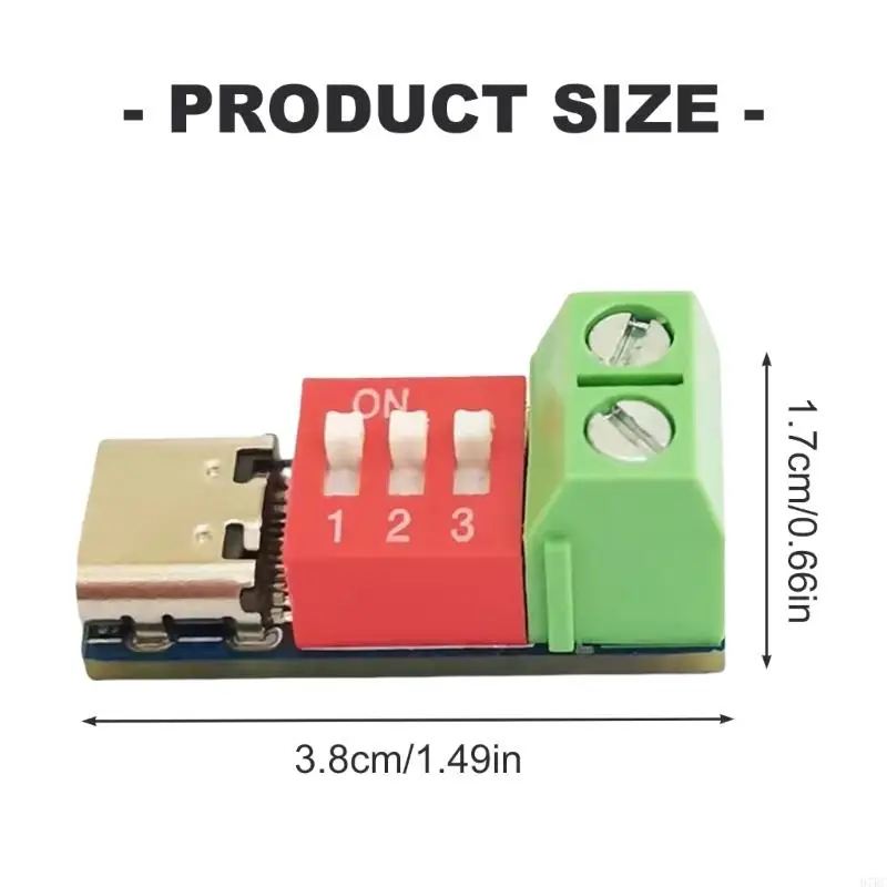 Características:OOTDTYEsta placa de prueba de carga rápida PD3.0/2.0 Decoy ofrece una salida ajustable de 5 V-20 V a través de interruptores DIP.