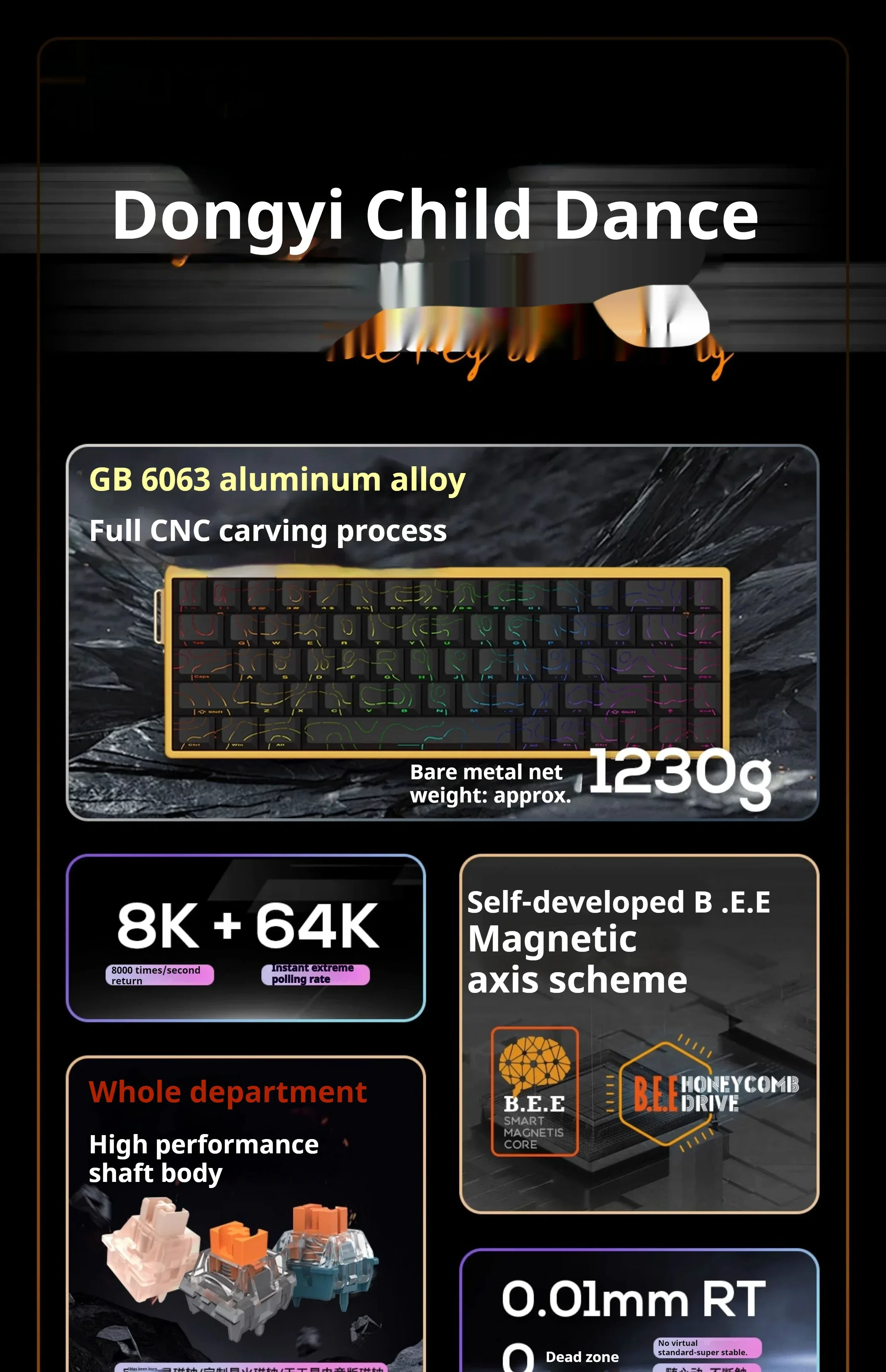 Hacker 68L 68M teclado con interruptor magnético de aluminio para juegos por cable RT 0,01mm 8K tasa de orolling 64K velocidad de escaneo 0,125 ms teclado de latencia